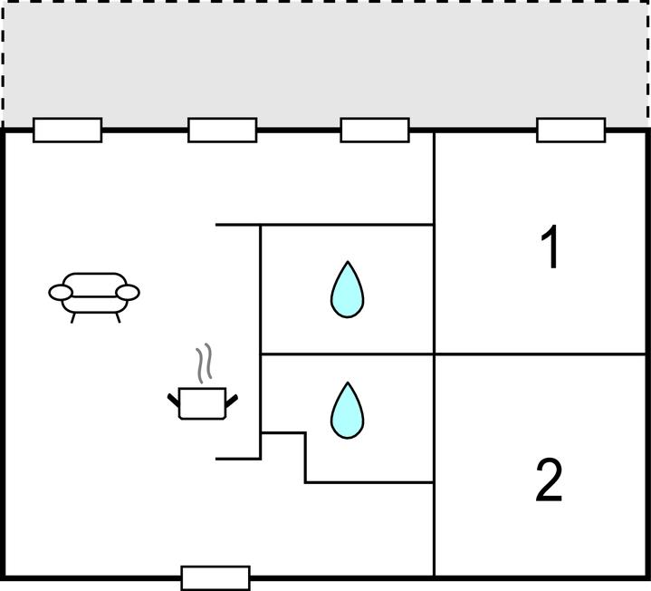 Opholdsstue/køkken - 2 Sovepladser. (Sofa, madras eller lignende).