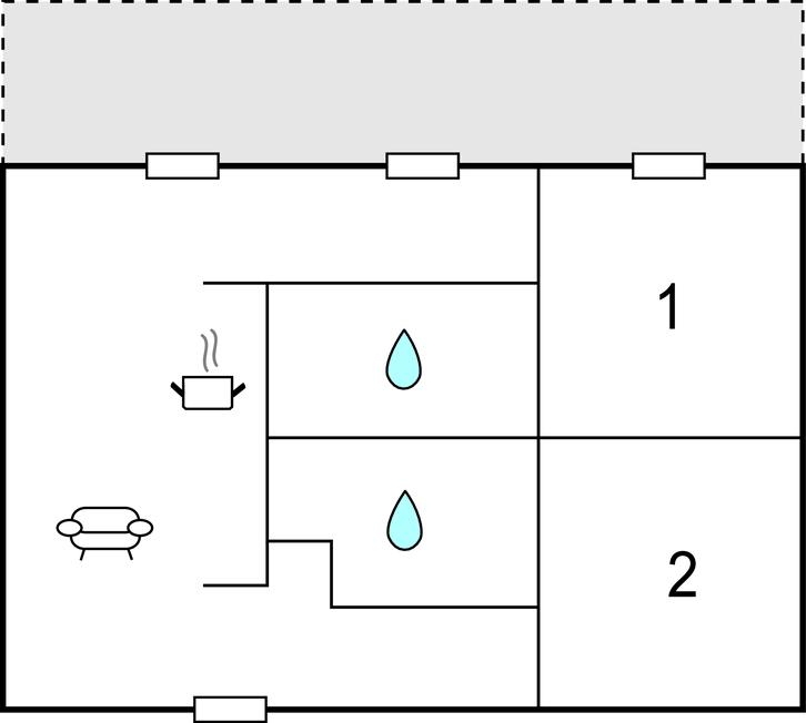 Opholdsstue/køkken - 2 Sovepladser. (Sofa, madras eller lignende).