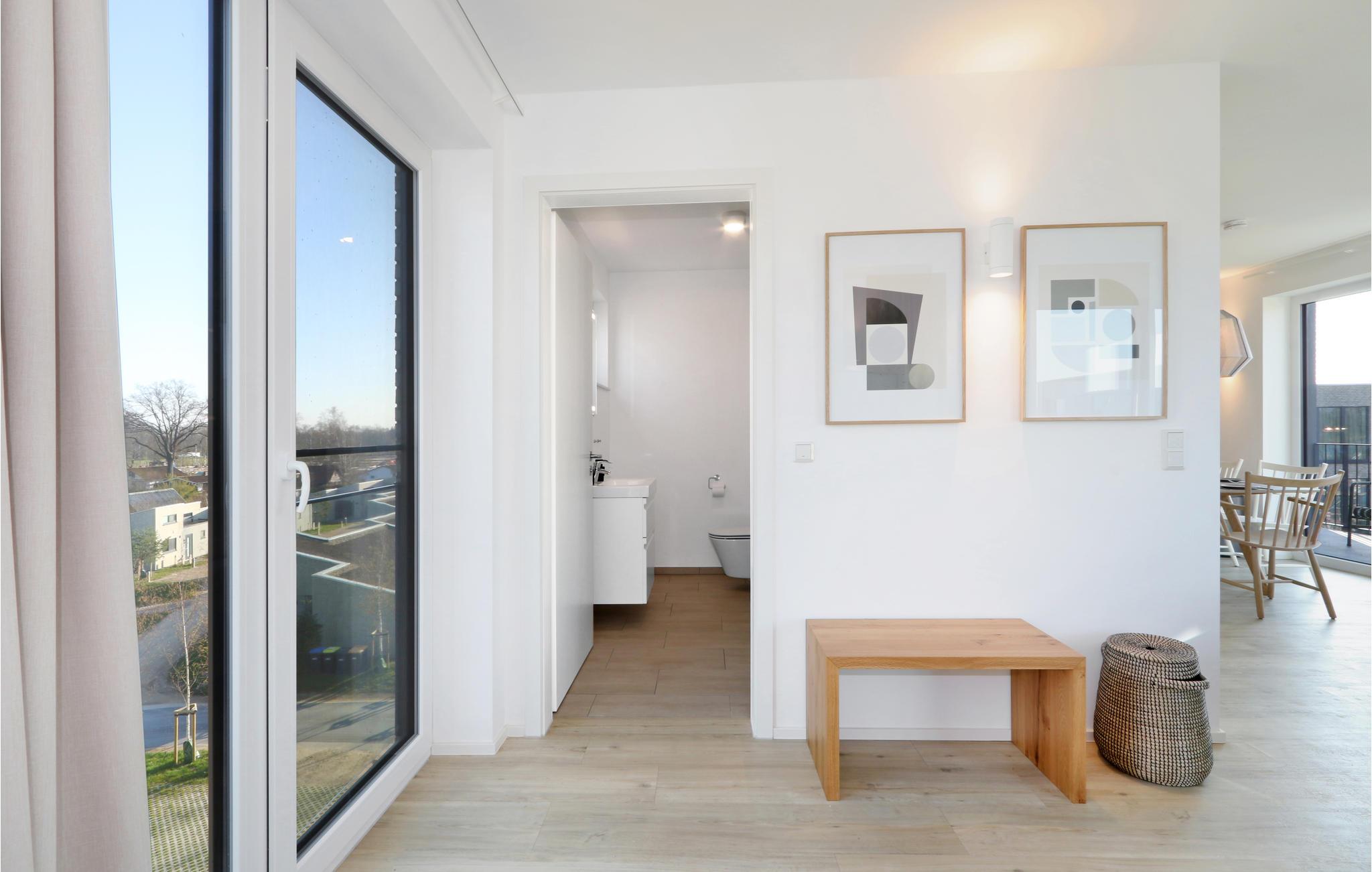 Velkommen til jeres eksklusive penthouse, hvor I kan se frem til et vidunderligt ophold i alle henseender. I bydes velkommen af skandinaviske designmøbler i høj kvalitet og en hyggelig atmosfære - helt perfekt til den eksklusive ferie. Takket være biopejsen er der en hyggelig varme selv på kolde dage, og gulv-til-loft-vinduerne sørger for et fantastisk lysindfald. Fra balkonen kan I nyde udsigten langt ud over landskabet sammen med venner eller familie.