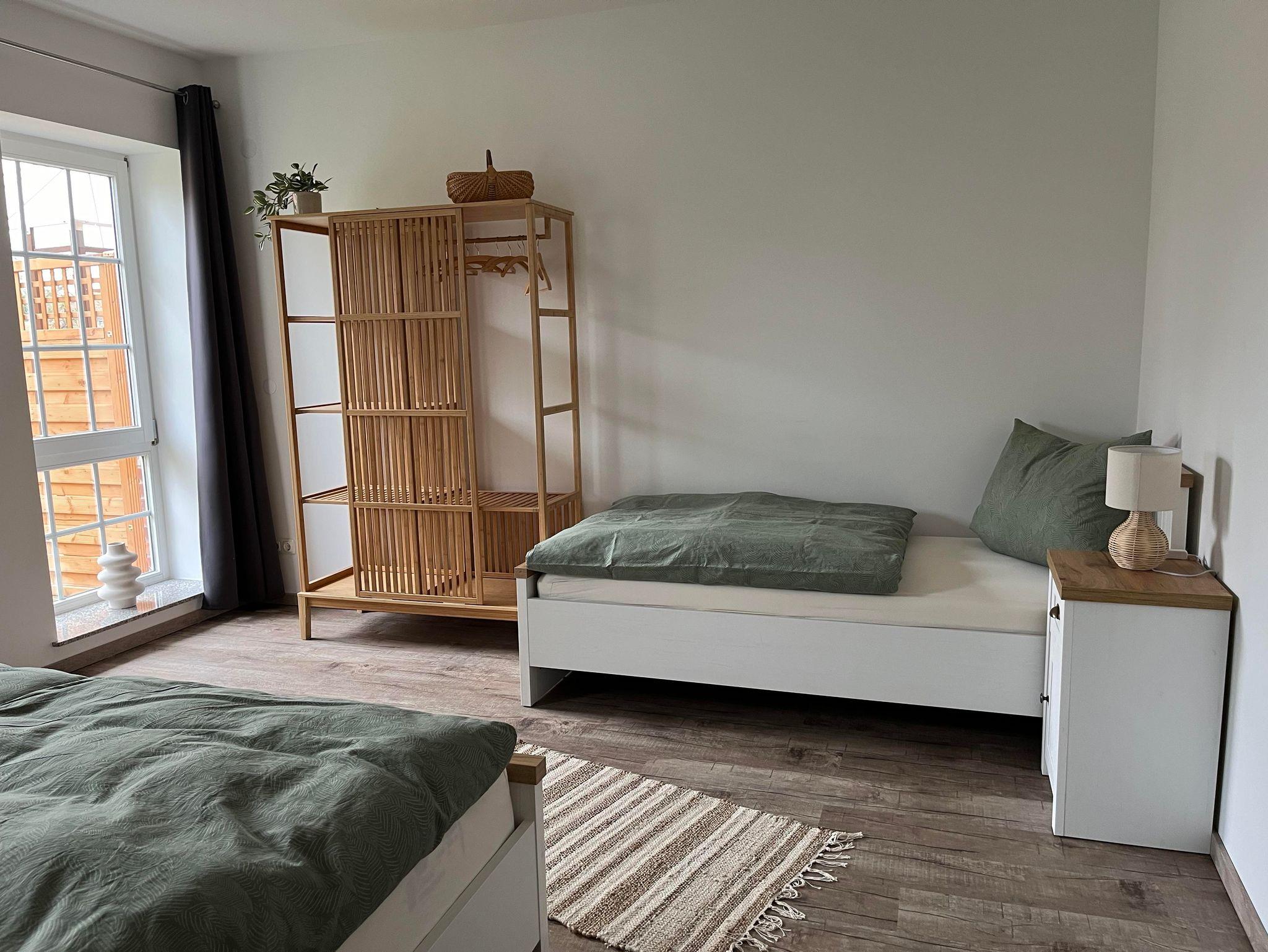 1 Schlafzimmer mit Doppelbett (1,80 x 2,00m) und ein zusätzliches Einzelbett (0,90 x 2,00m)