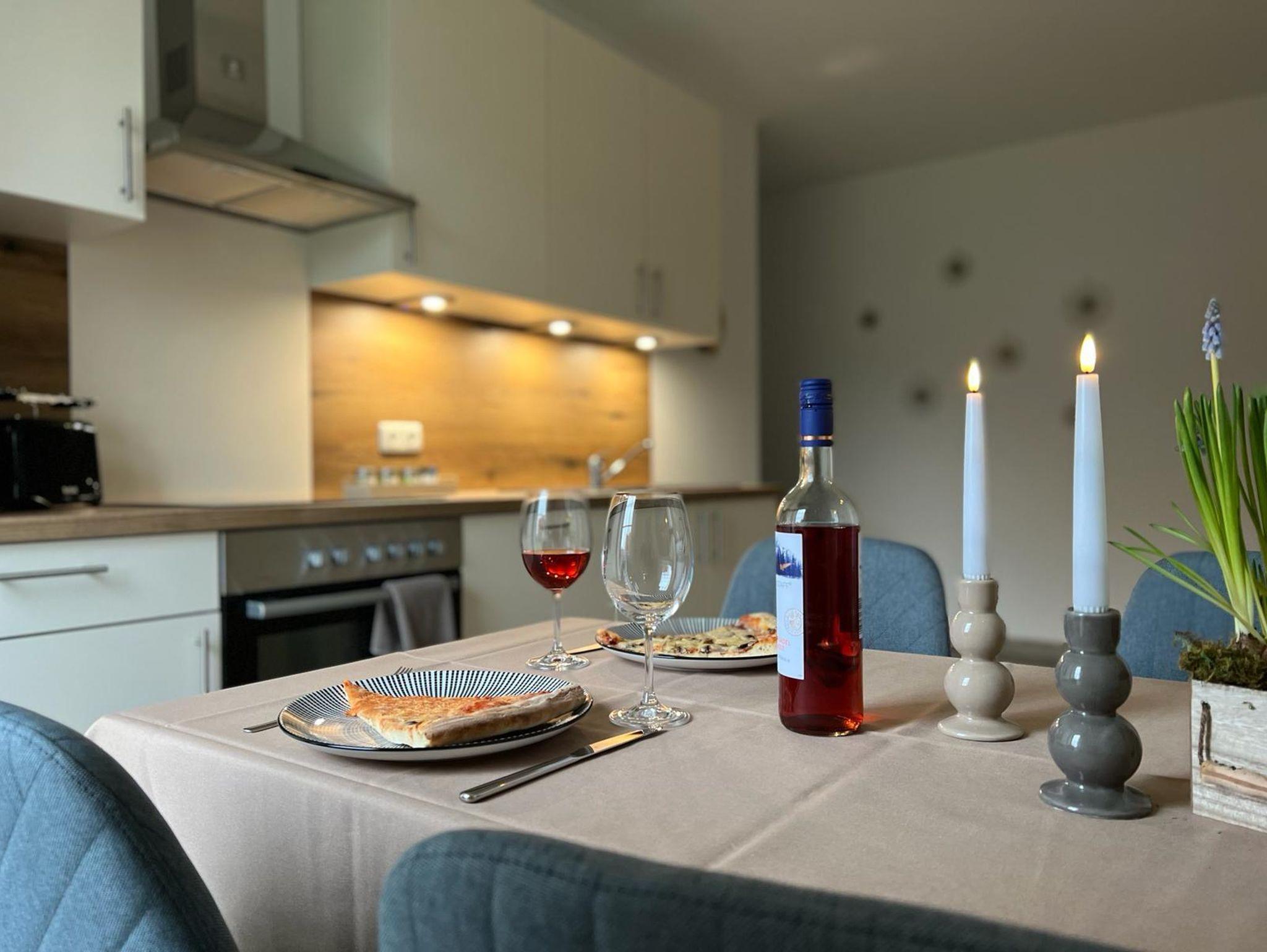 Die ca. 65qm große Wohnung besteht aus einem Schlafzimmer mit Doppelbett (1,80 x 2,00m) und zusätzlich mit einem Einzelbett (0,90 x 2,00m), ein großzügiges Duschbad, ein Wohnzimmer mit Schlafcouch (1,40 x 2,00m) und eine Einbauküche, die voll ausgestattet ist. Die Terrasse ist direkt vom Wohnzimmer aus zu erreichen.