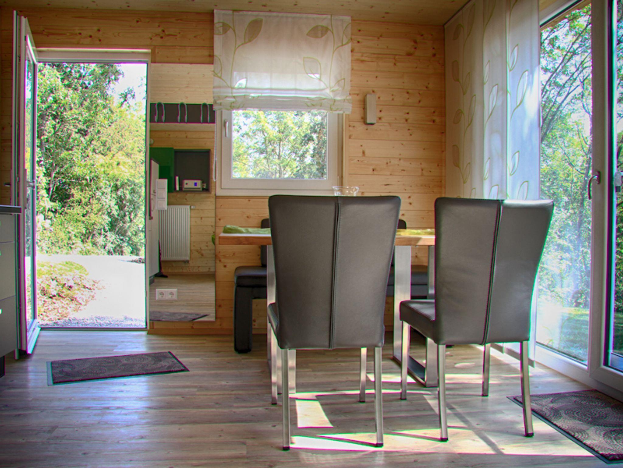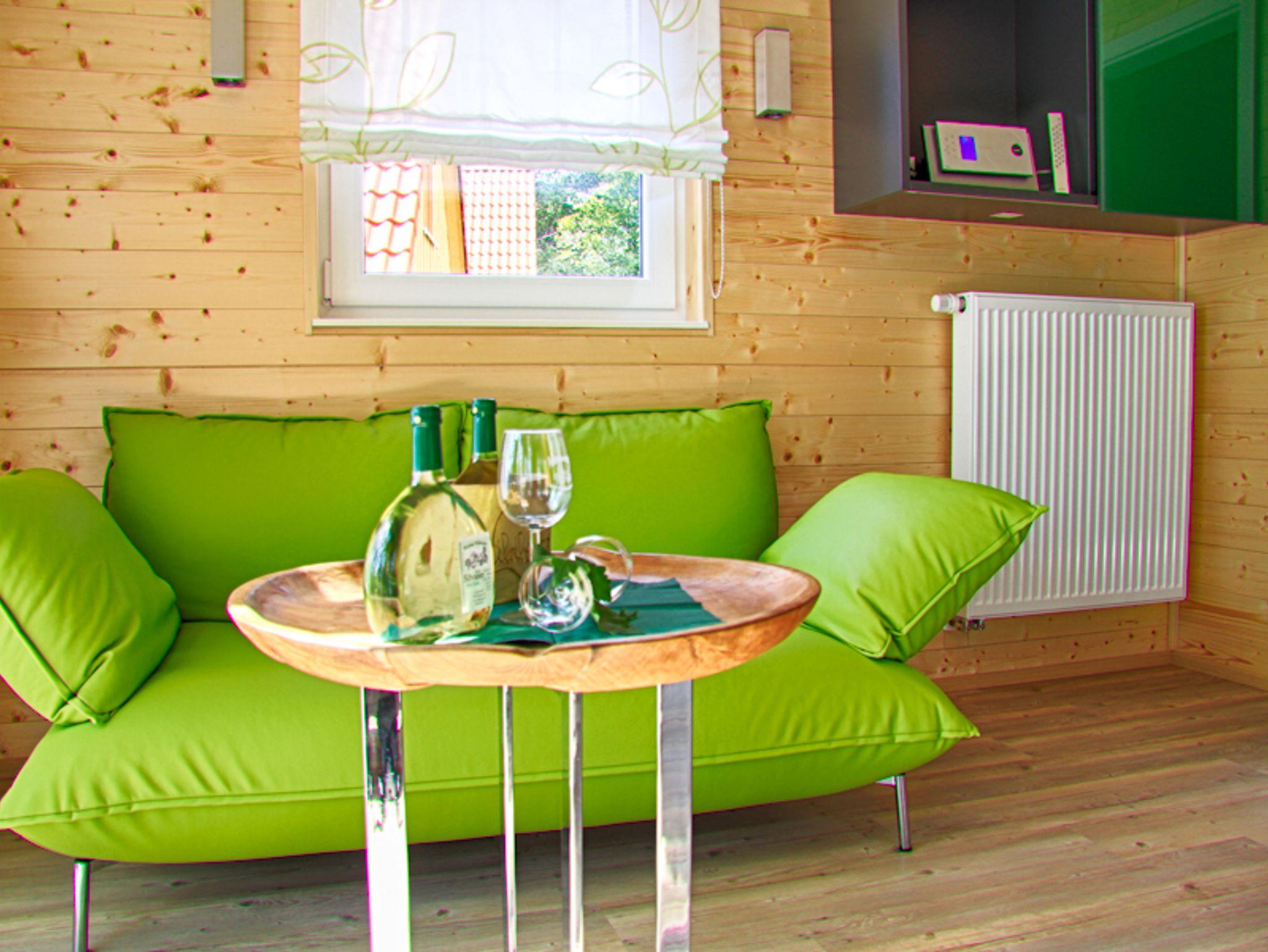 Das in grün gehaltene Haus, von Weinstöcken umgeben, bietet auf der Kiesterrasse neben der Holzgarnitur einen Strandkorb der Extraklasse. Hier können Sie ein Glas Frankenwein genießen oder nach dem Baden im Whirlpool ruhen. Sie schlafen himmlisch im Bett mit Baldachin, der Sie heimelich umhüllt. Das Ferienhaus bietet auf 70 m² Platz für bis zu 5 Personen. Die voll ausgestattete, moderne Küche mit Kühlschrank, Spülmaschine, Herd, Backofen, Wasserkocher und Kaffeemaschine lässt keine Wünsche offen und lädt zu gemütlichen Kochabenden ein. Das WLAN und den Parkplatz können Sie gerne kostenfrei nutzen.