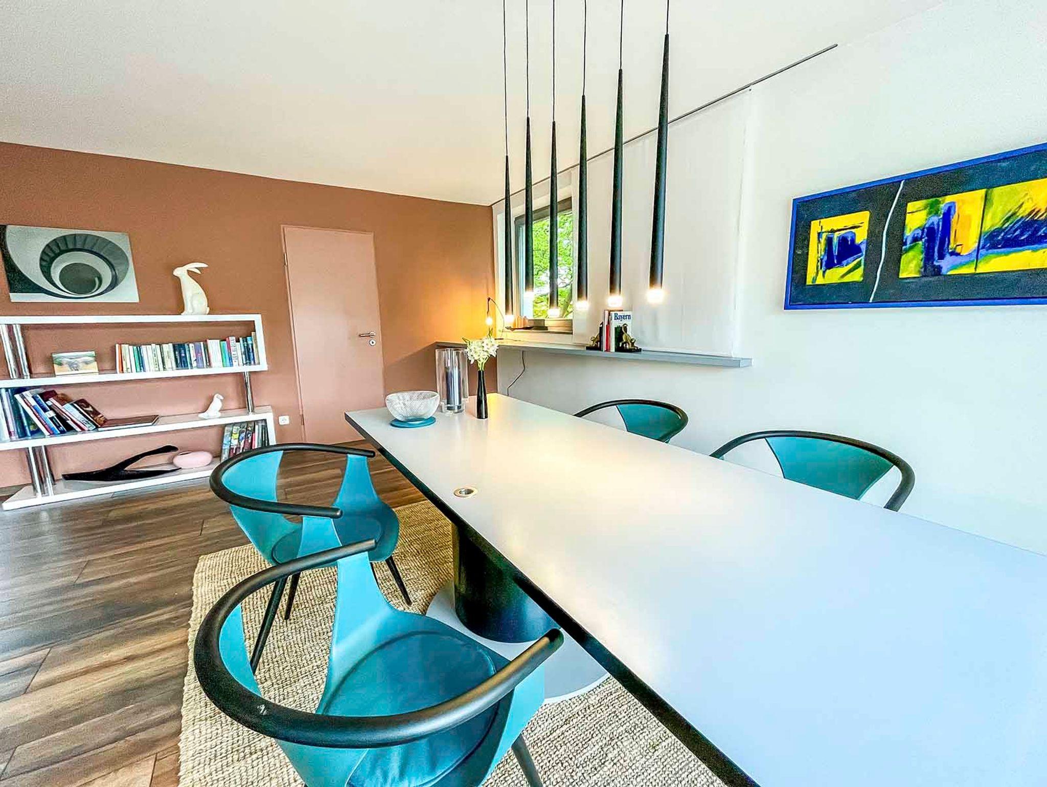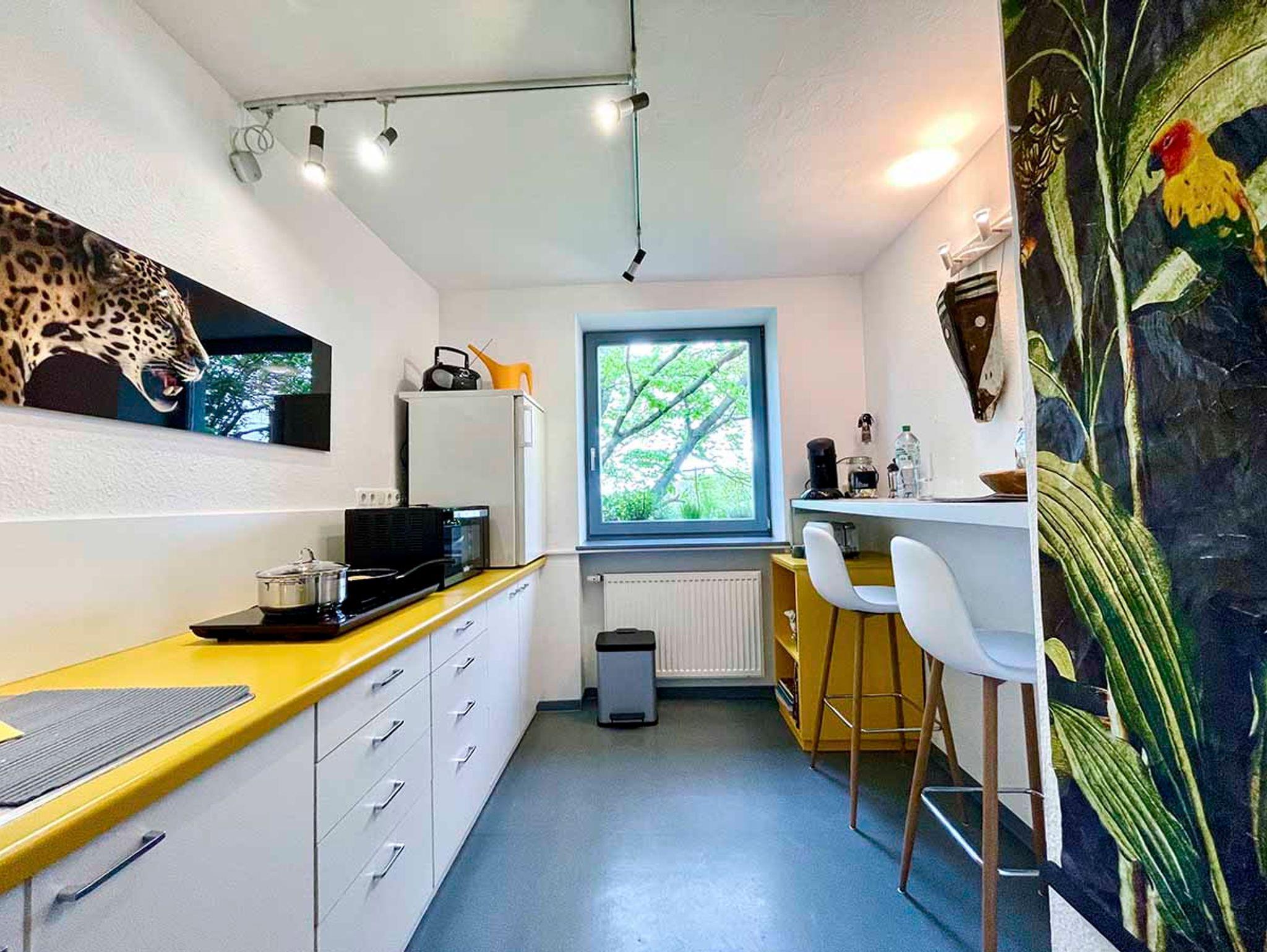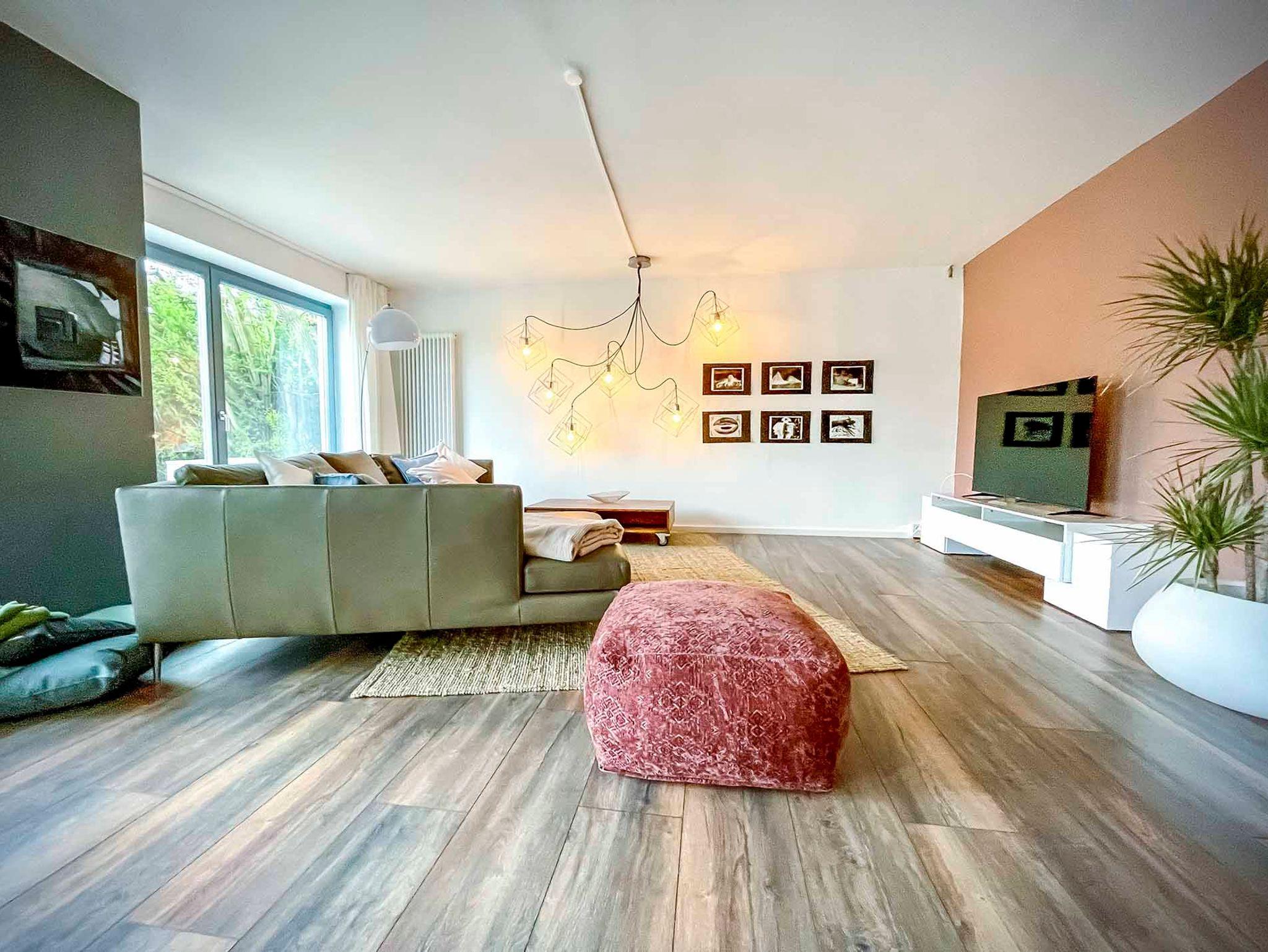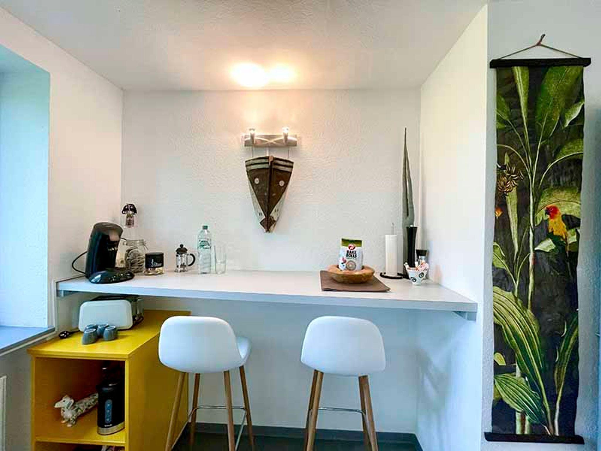 Auf 82qm Wohnfläche erwarten Sie, individuell und mit Liebe zum Detail eingerichtete, lichtdurchflutete Räume. Aus allen Fenstern ein Blick ins Grüne. Ideal für 2 Personen mit großzügigem Wohn- und Essbereich.
