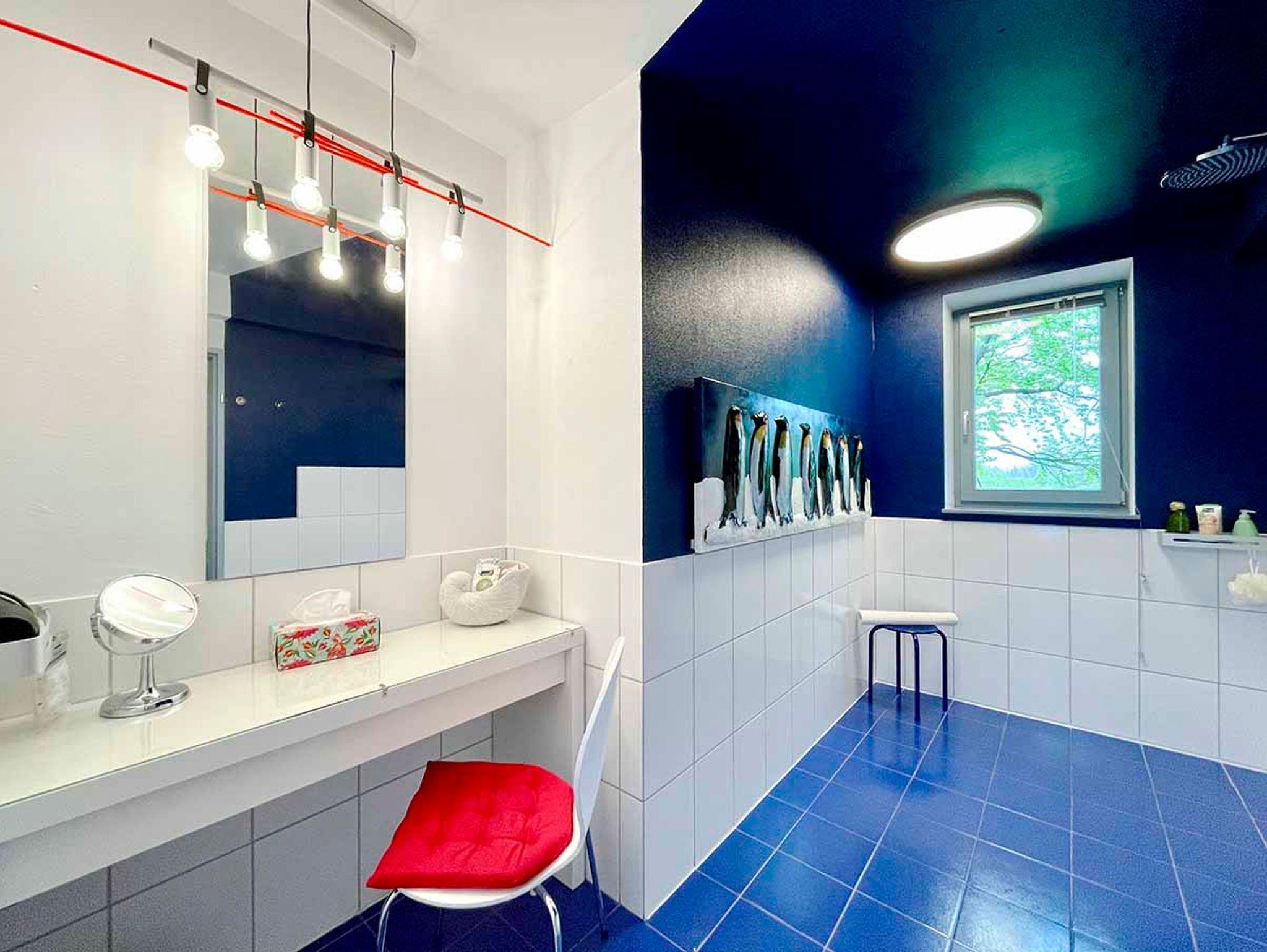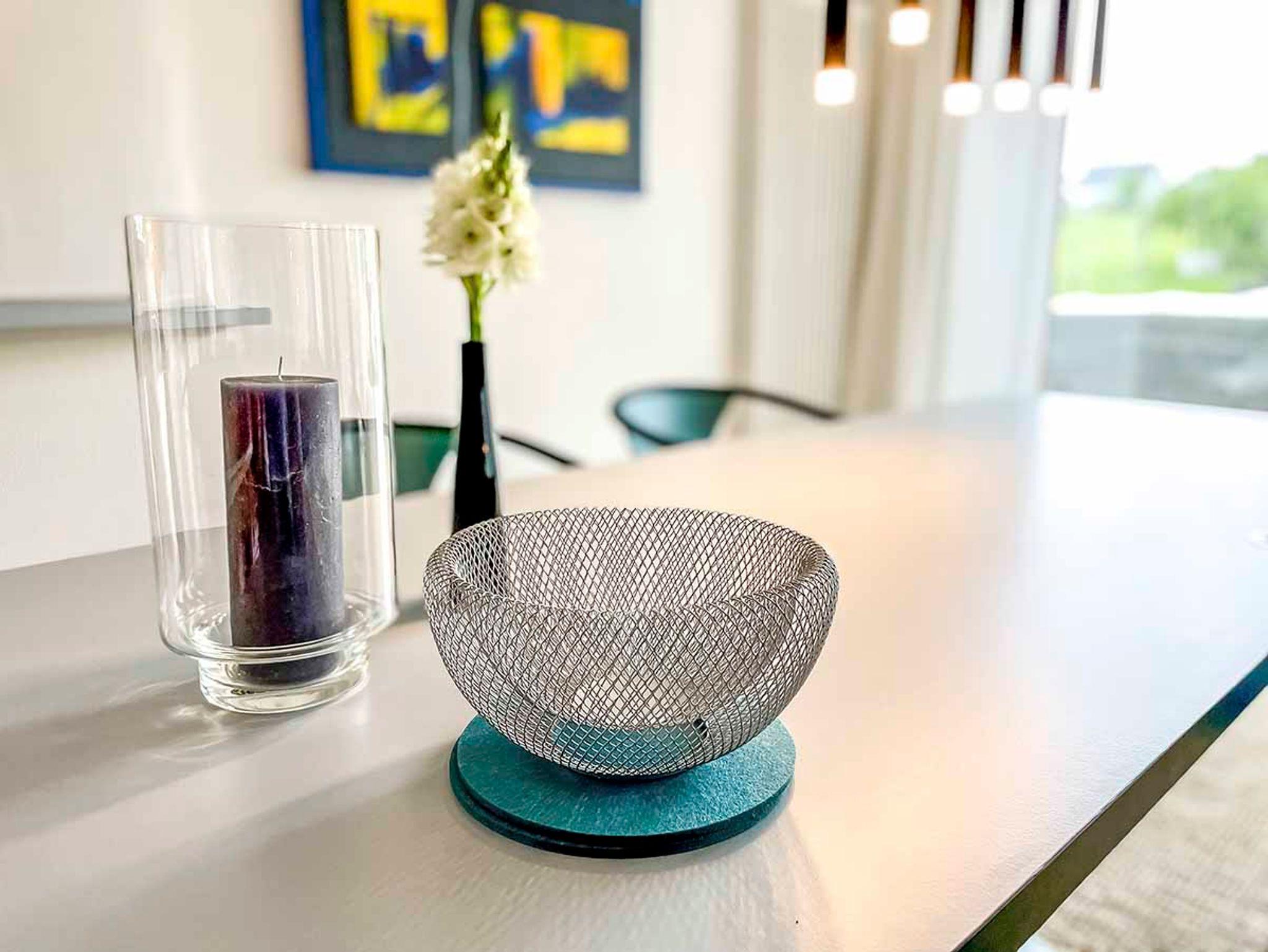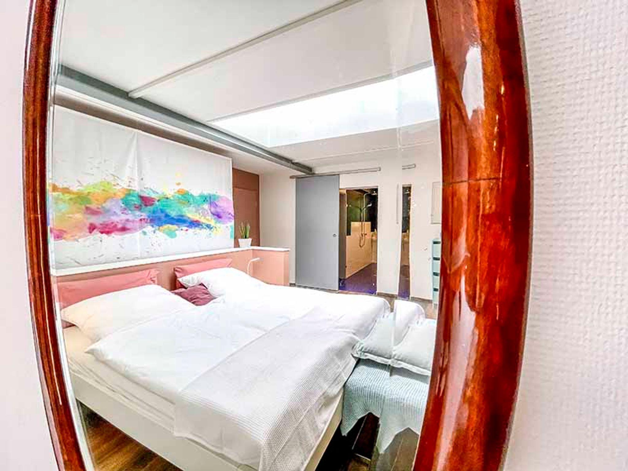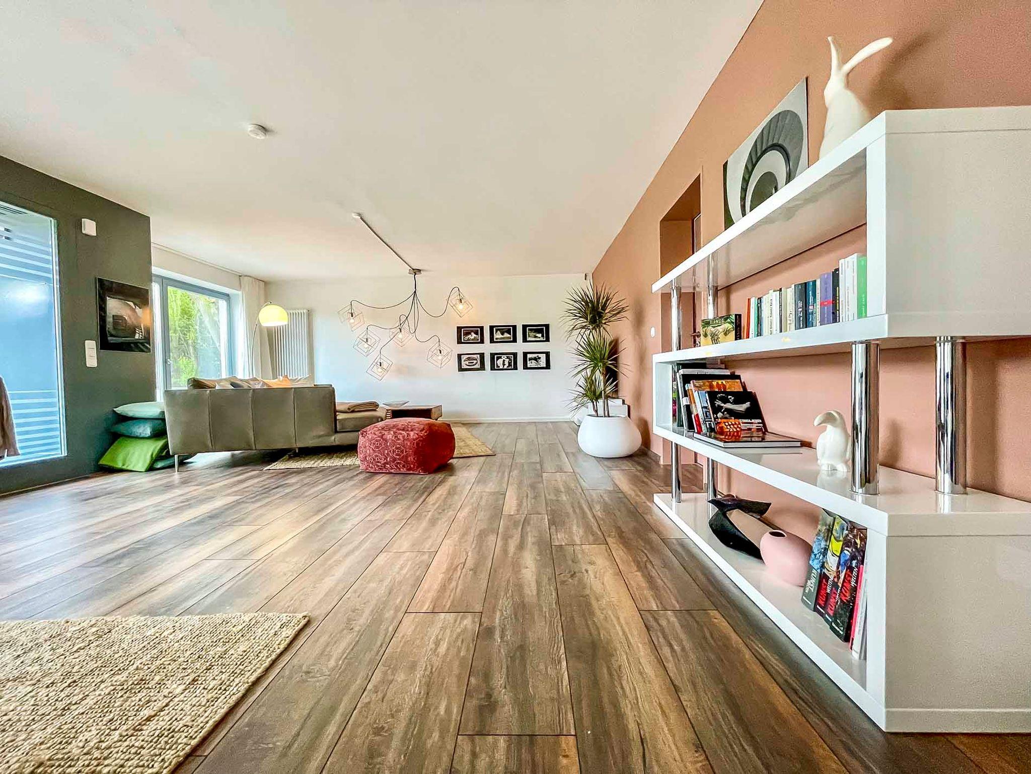 Auf 82qm Wohnfläche erwarten Sie, individuell und mit Liebe zum Detail eingerichtete, lichtdurchflutete Räume. Aus allen Fenstern ein Blick ins Grüne. Ideal für 2 Personen mit großzügigem Wohn- und Essbereich.