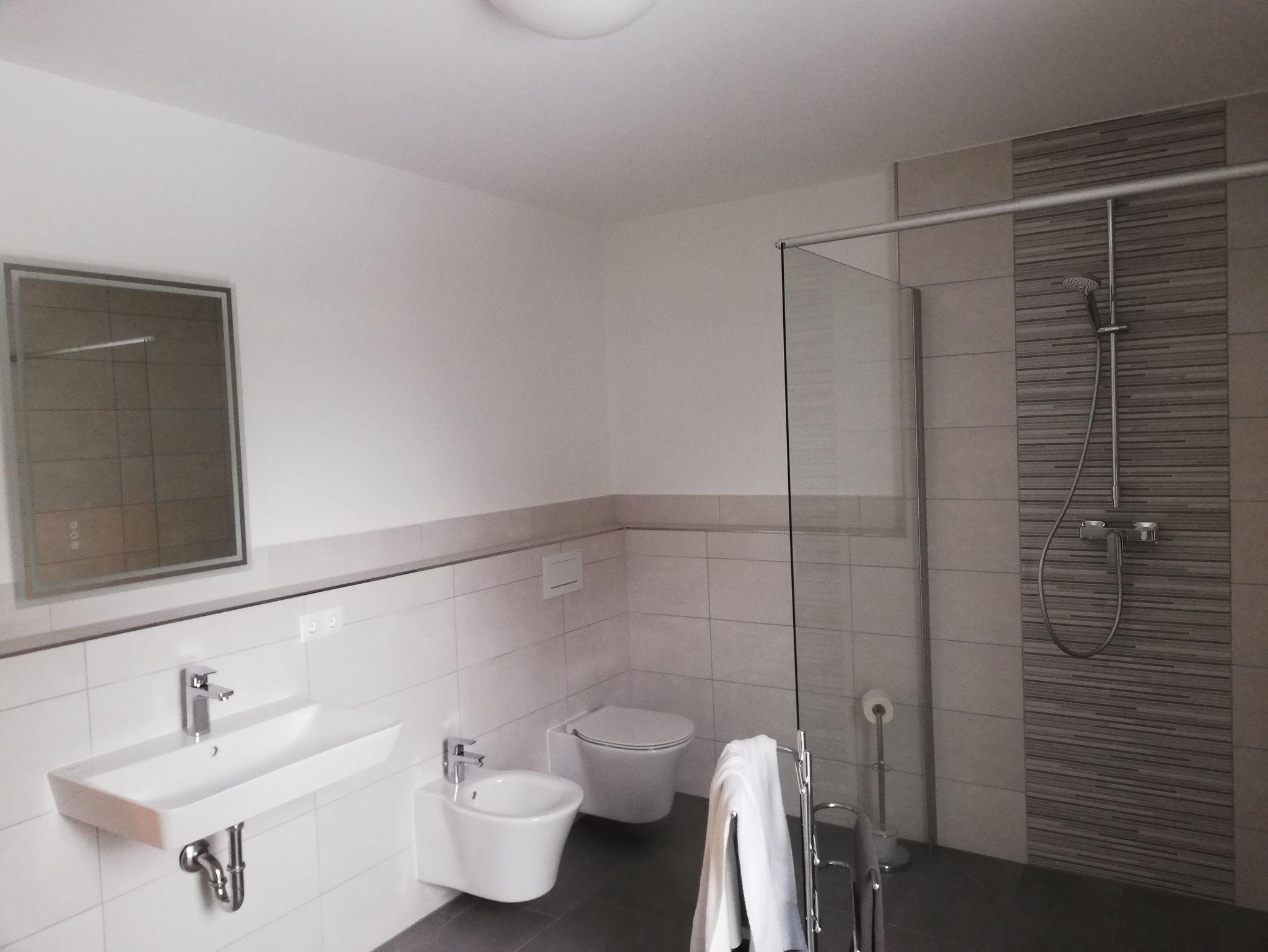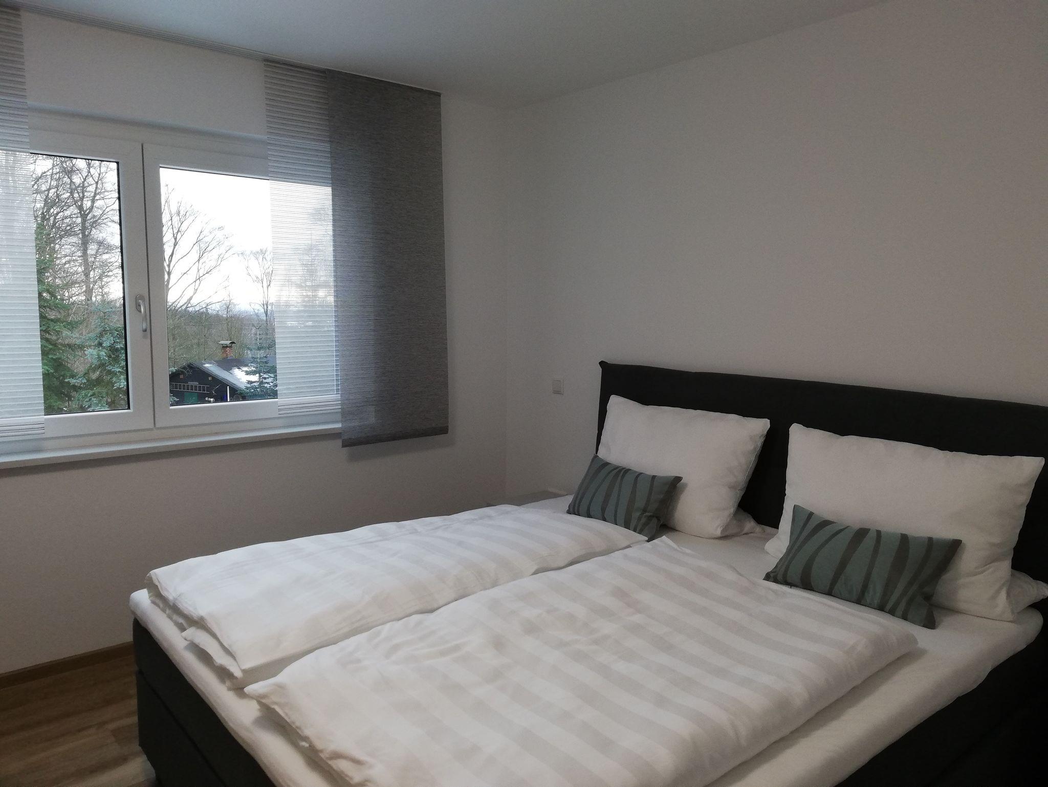 Die Wohnung verfügt über zwei Schlafzimmer. Ein Schlafzimmer ist mit einem Doppelbett ausgestattet, das zweite Schlafzimmer mit einem Etagenbett. Im kombinierten Wohn- und Kochbereich steht für die fünfte und sechste Person ein komfortables Schlafsofa zur Verfügung. Zudem befindet sich im Wohnzimmer ein TV und eine Essecke. Die Küche ist komplett ausgestattet (Herd, Backofen, Kühlschrank, Gefrierfach, Geschirrspüler, Kaffeemaschine, Wasserkocher, Geschirr, Besteck, Küchenwäsche und viele weitere Küchenutensilien). Das neue Tageslichtbadezimmer ist mit Dusche, Handtuchtrockner, Bidet und WC ausgestattet.