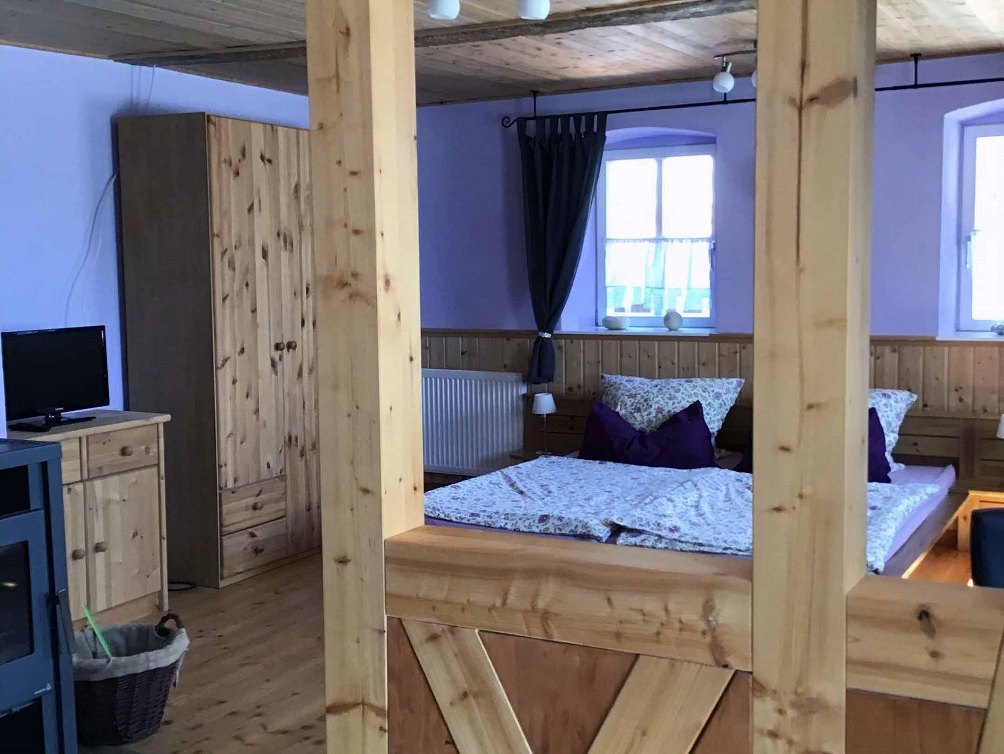 Die liebevoll eingerichtete und gemütliche Ferienwohnung im Landhausstil wird Ihr Domizil sein. Die Echtholzmöbel und das großzügig verarbeitete Holz sorgen für ein angenehmes Wohnklima. Der Schwedenofen sorgt in kalten Zeiten für ein romantisches Ambiente und eine kuschelige Wärme. Der großzügig geschnittene Wohn-Schlafraum lässt keine Wünsche offen. Abgerundet wird das Ganze durch kostenfreies WLAN, ein Festnetztelefon und einen SAT-TV mit integrierten DVD-Player. Die Küche ist voll ausgestattet und besitzt eine Spülmaschine, eine Mikrowelle, eine Kaffeemaschine und eine Senseo-Kaffeemaschine. Auch um Spülmittel, Spüllappen und Geschirrtücher müssen Sie sich nicht sorgen. Das Bad, welches ausschließlich von Ihnen genutzt wird, verfügt über eine Dusche, ein WC und ein Handwaschbecken. Handtücher, Bettwäsche und Fön werden kostenfrei gestellt.