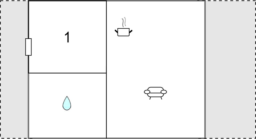 Opholdsstue/køkken - 2 Sovepladser. (Sofa, madras eller lignende).