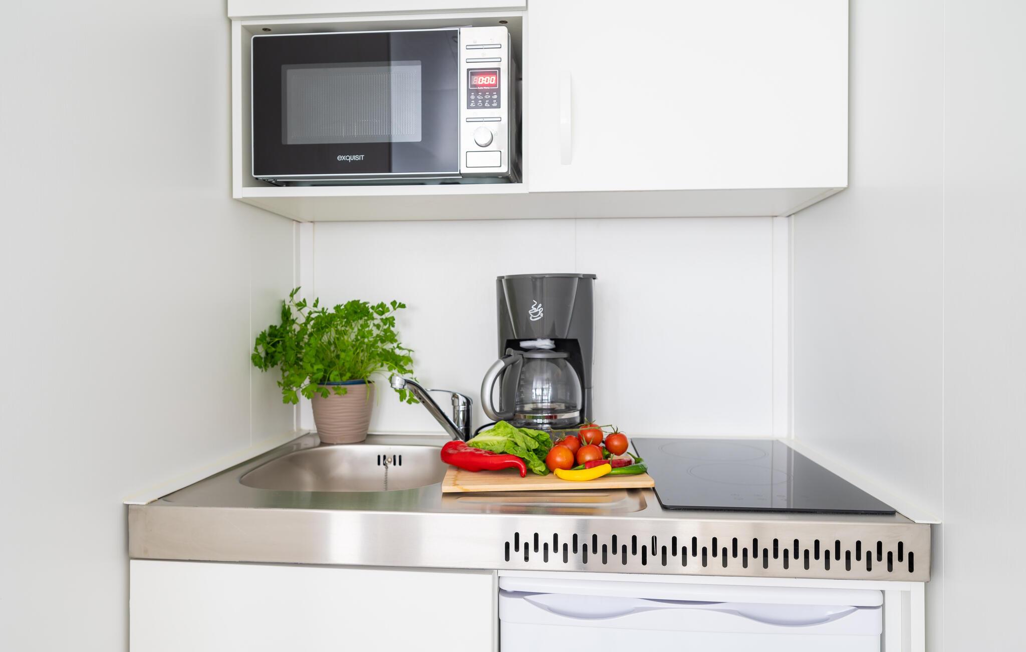 Lejligheden ligger lige i den smukke natur med udsigt til vandet og bådpladserne i lystbådehavnen. Her får I med andre ord den helt perfekte base for en ferie med mange dejlige udflugter på øen. Studio Waterfront har et soveværelse med dobbeltseng og et lille tekøkken. Køkkenet har køleskab, to-brænder kogeplade, kaffemaskine, elkedel, brødrister og mikroovn. Badeværelset er udstyret med bruseniche, håndvask og toilet, og så byder lejligheden på et klimaanlæg med både køle- og varmefunktioner, så I kan finde den helt rette temperatur at slappe af i.