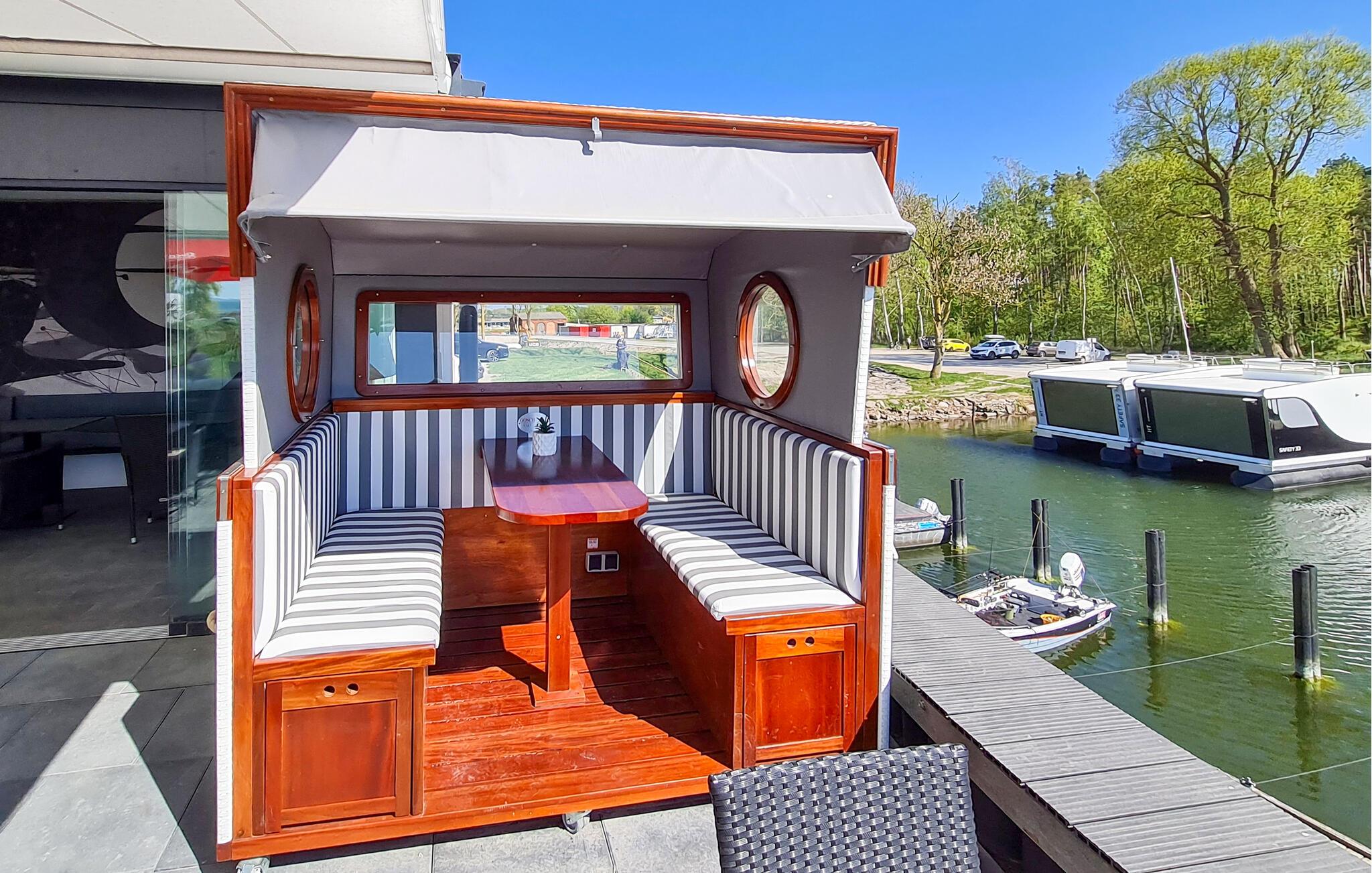 Huset ligger i naturreservatet omkring den store Jasmunder Bodden på den nordlige del af øen Rügen, og her kommer I til at bo i en dejlig beskyttet beliggenhed i Marina Martinshafen. Lad blikket vandre over det vidunderlige landskab med bugter, siv og skove eller nyd en flaske vin med udsigt til solnedgangen efter en begivenhedsrig dag. Der venter jer mange afslappende timer og unikke feriestunder her. I får alt, I kunne drømme om med masser af uberørt natur, vand og et lille stykke strand lige ved havnen. Slap af her dagen lang, og hvis vejret er til det, er der rigtig gode forhold for kite- eller windsurfing.
