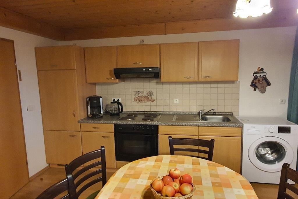House in a dream location with distant views of mountains and valley, quiet location on the edge of the forest near the village. Expansion to 10 people possible (by renting the other half of the house).