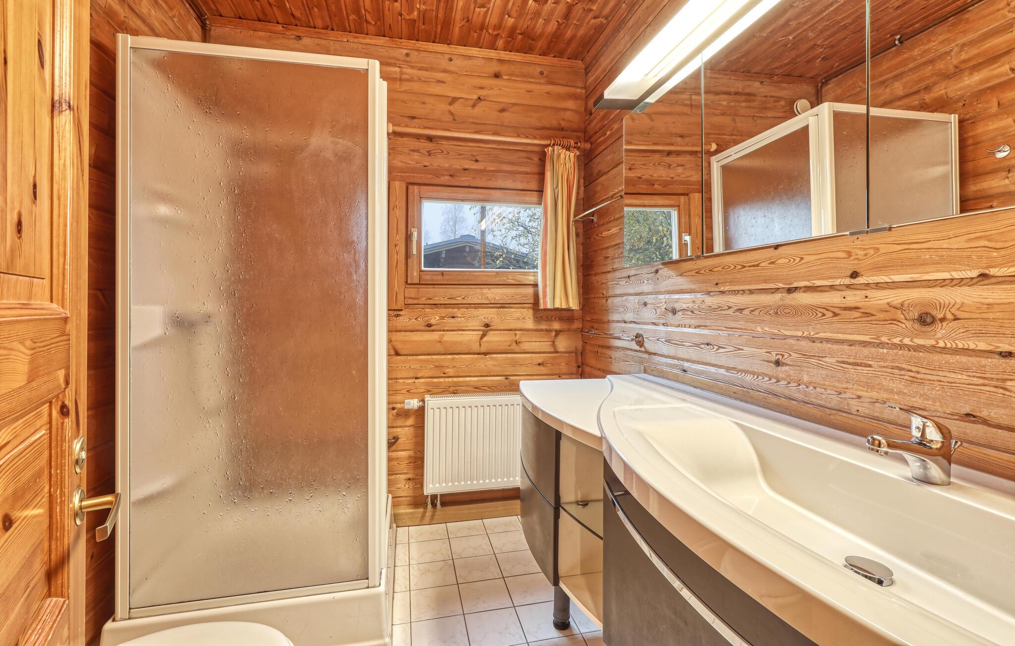 Glæd jer til en afslappende familieferie i dette rustikke og varme feriehus. Boligen er indrettet med praktiske træmøbler og byder på alt, hvad I skal bruge til en ubekymret ferie. Huset er veludstyret og emmer af en hjemlig atmosfære, der lægger op til spil og film i stuen ved den hyggelige brændeovn og til at lave mad sammen i det åbne køkken. Den store, delvist overdækkede terrasse er også et dejligt sted at nyde dagens måltider eller slappe af i solen.