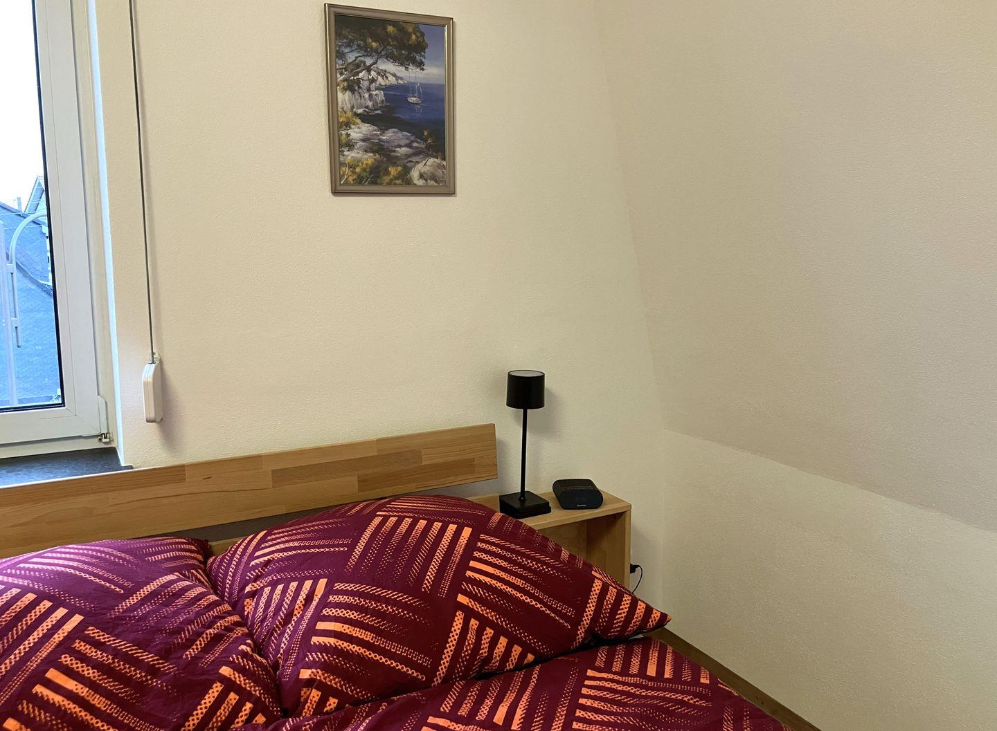 Im Wohnzimmer lädt eine gemütliche Sofaecke zum Entspannen ein. Bücher, Spiele und eine elektronische Dartscheibe sorgen für Unterhaltung. Über den Glasfaseranschluss steht schnelles Internet für Streaming und Arbeit bereit.