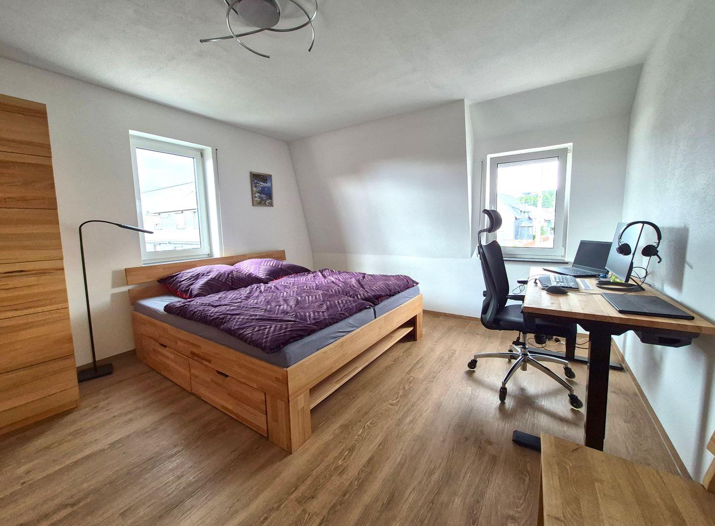 Zwei Homeoffice-Plätze (Schreibtisch, Bildschirm, ergonomischer Stuhl)
