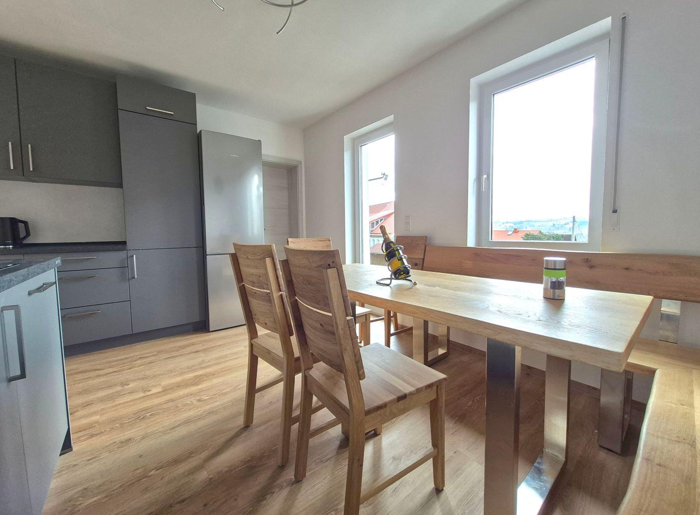 Das moderne Ferienhaus Bibertalblick im Herzen von Schnett im Thüringer Wald bietet auf zwei Etagen Platz für Familien und Freundesgruppen. Zwei Küchen, Sauna, Garten mit Trampolin und Glasfaser-Internet machen es ideal für Familienurlaub, Gruppenurlaub oder Workation. Genieße die sonnige Terrasse mit herrlichem Blick ins Bibertal – Dein komfortables Ferienhaus mit Sauna in Thüringen.