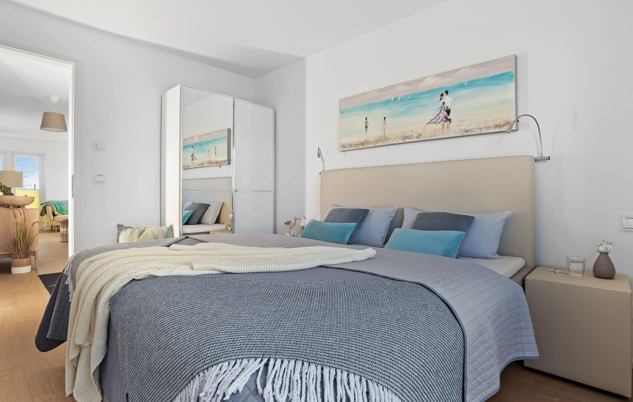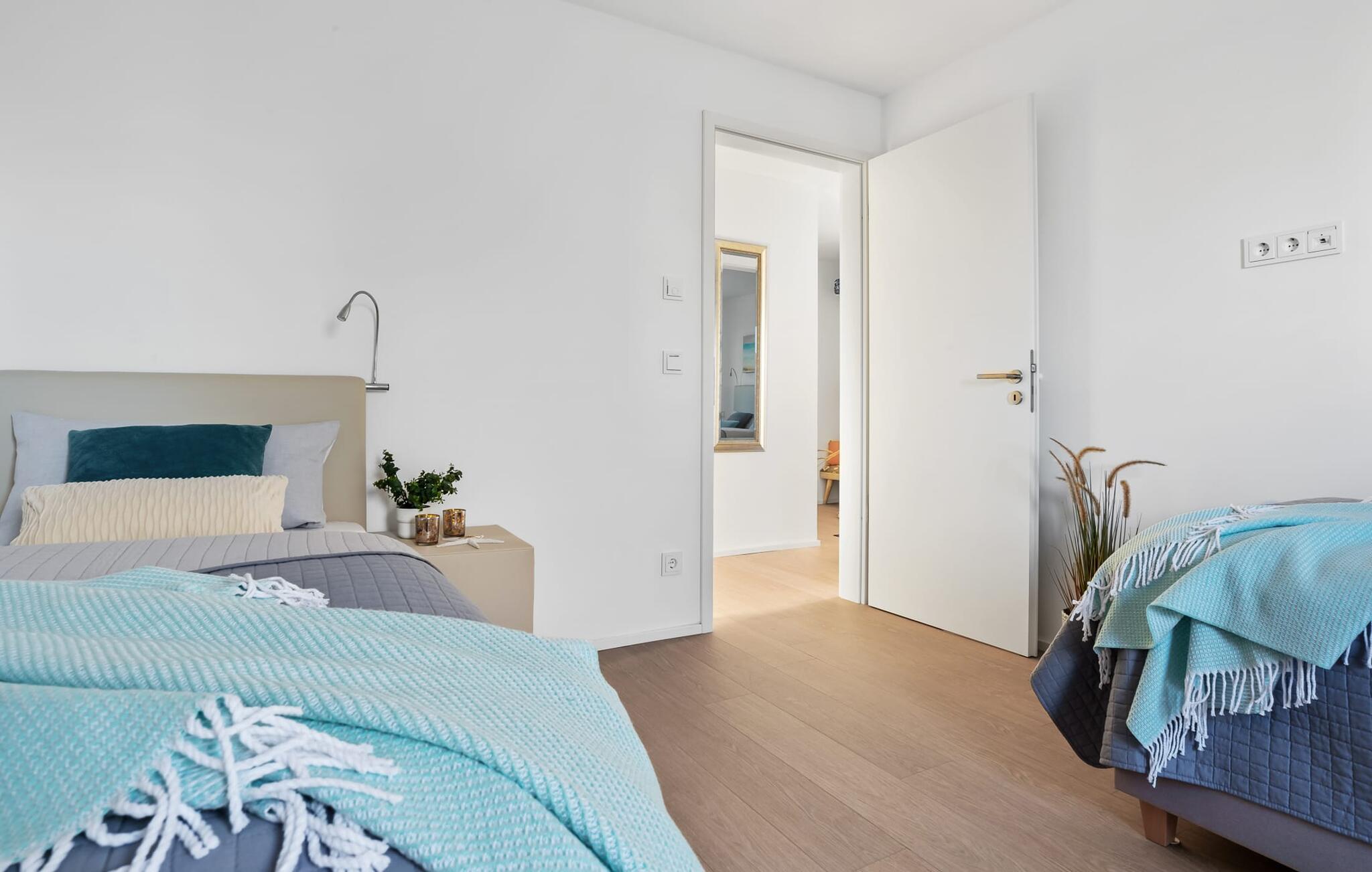 To soveværelser er tilgængelige til afslapning om natten. Det første soveværelse forkæler jer med en komfortabel boxmadras, mens det andet soveværelse inviterer jer til at drømme med to komfortable boxspring enkeltsenge.
