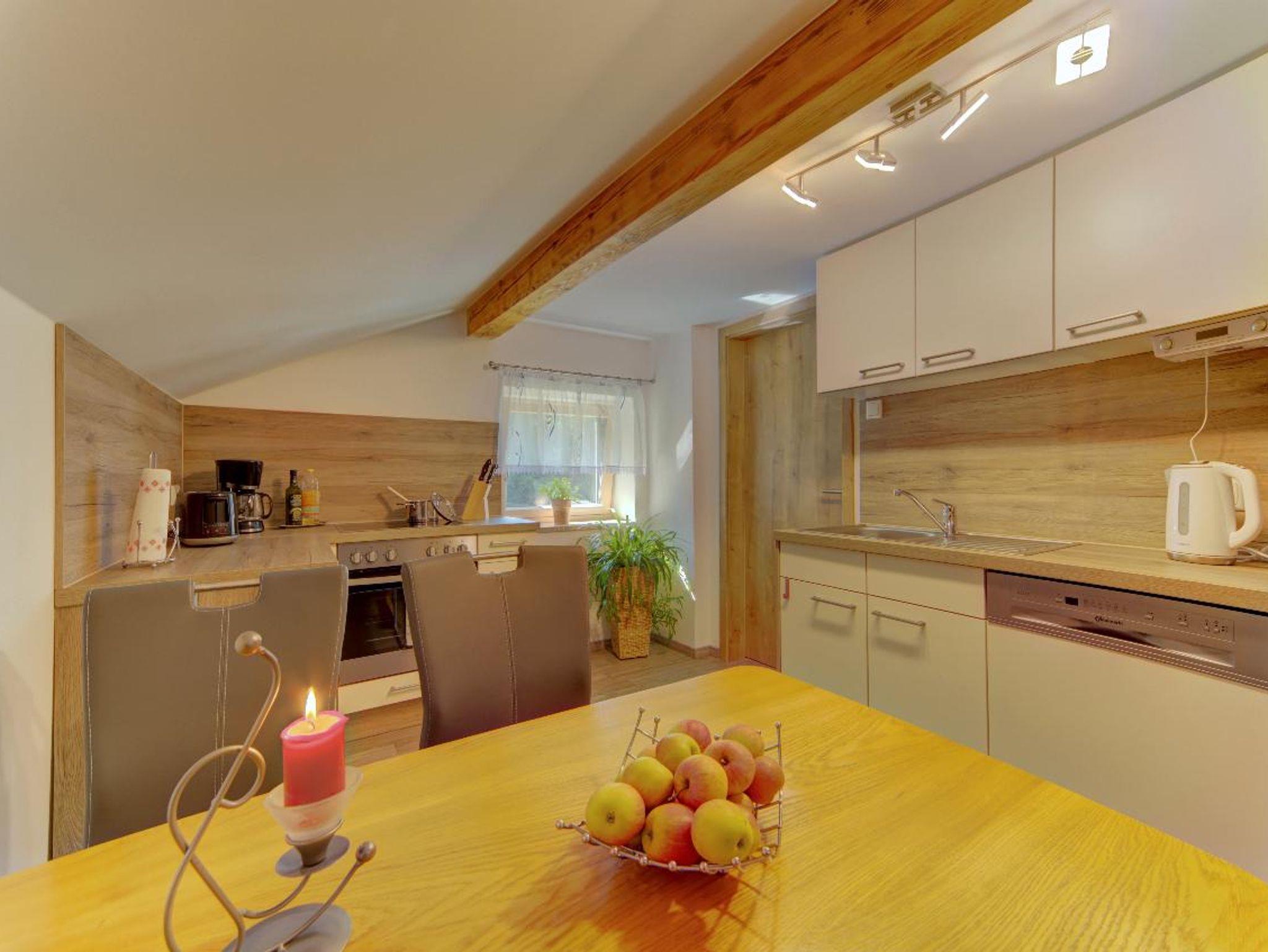 Ferienwohnung Dachgeschoß 60 qm, bestehend aus Schlafzimmer Zirbenholz mit TV, Küche mit Spülmaschine, Elektroherd, Kaffeemaschine, Toaster, Abstellraum mit Kühlschrank, Wohnschlafraum mit TV und Stereoanlage. Bad mit Du/WC. WLAN gratis,