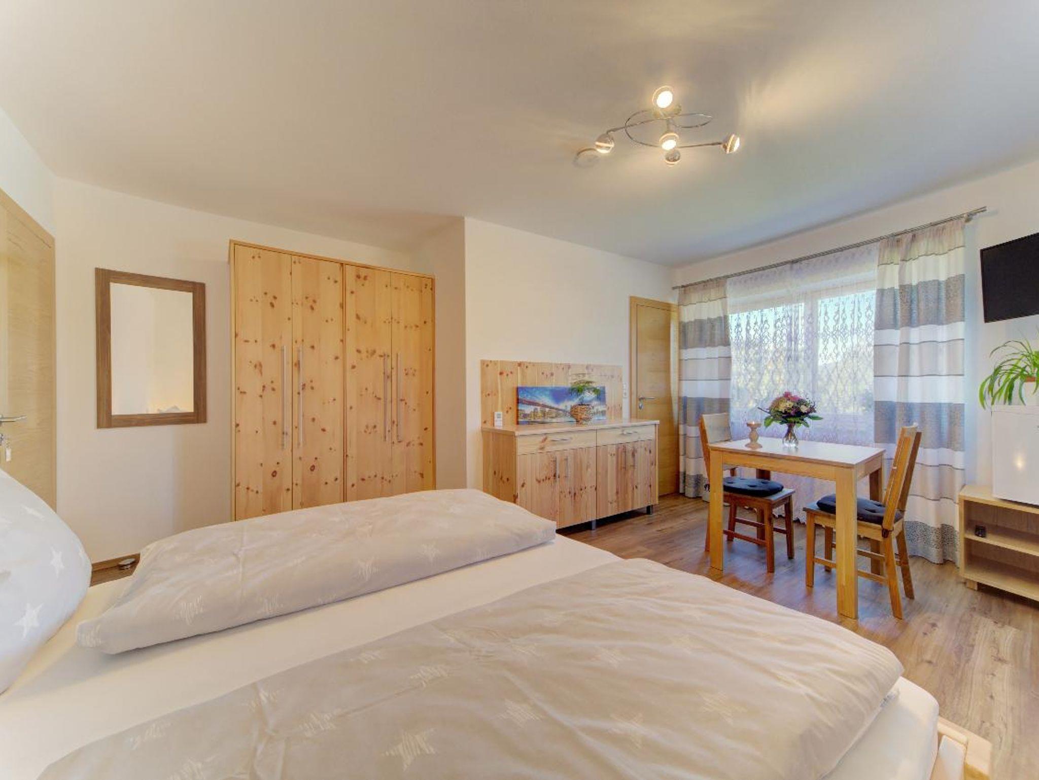 plus 25 qm Gästezimmer im Erdgeschoss. Dieses Zimmer beinhaltet, 1Zirbenholz-Doppelbett 180 x 200 cm, 1 Zirbenholzschrank, 1 Tisch und ein Saitbord, TV und Gratis-WLan und hat einen sep. Eingang zu einer Dusche,WC