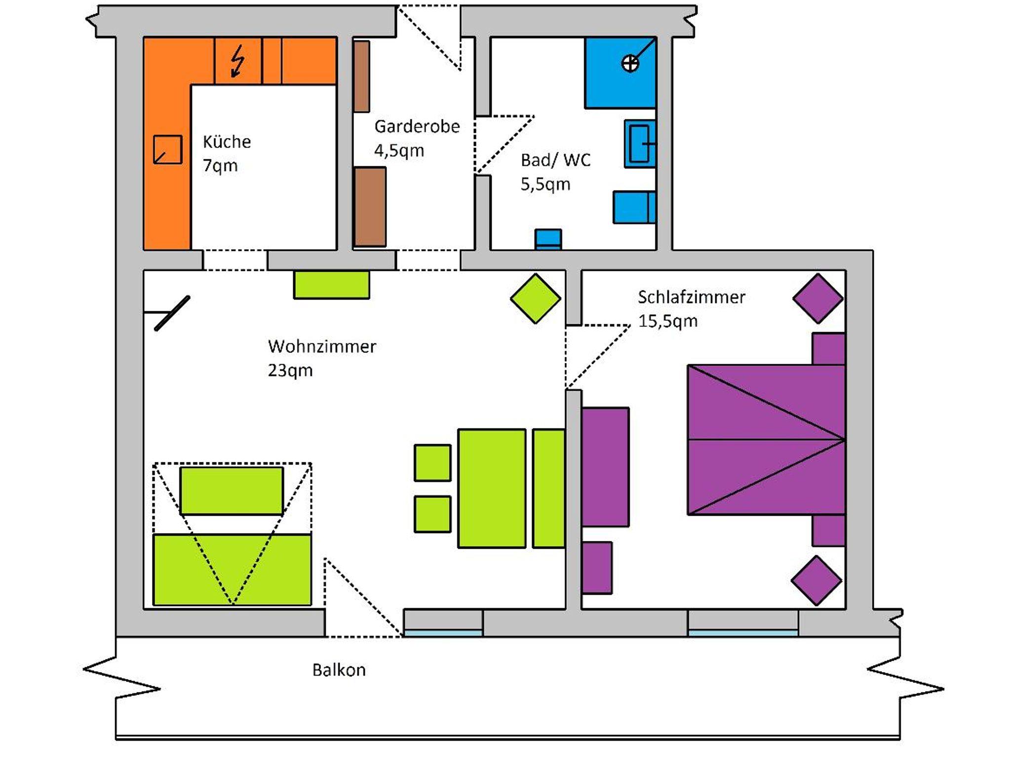 Größe ~55 qm / für max. 4 Personen / Etage 1.OG / Ausrichtung Ost