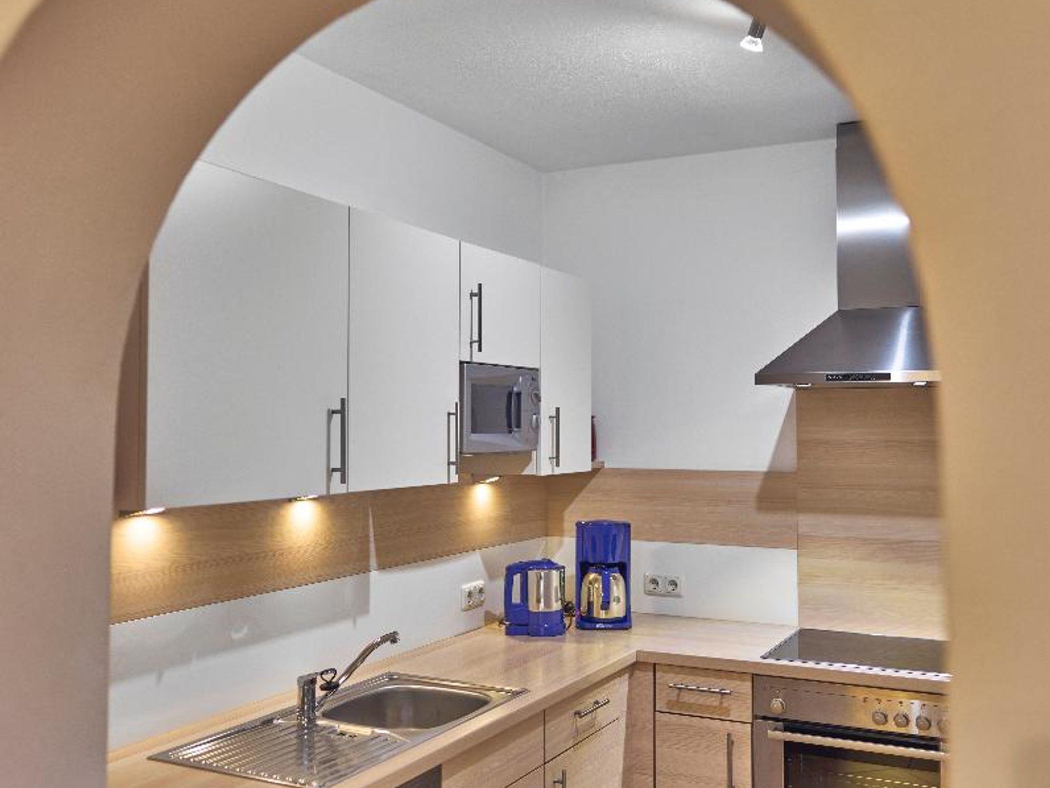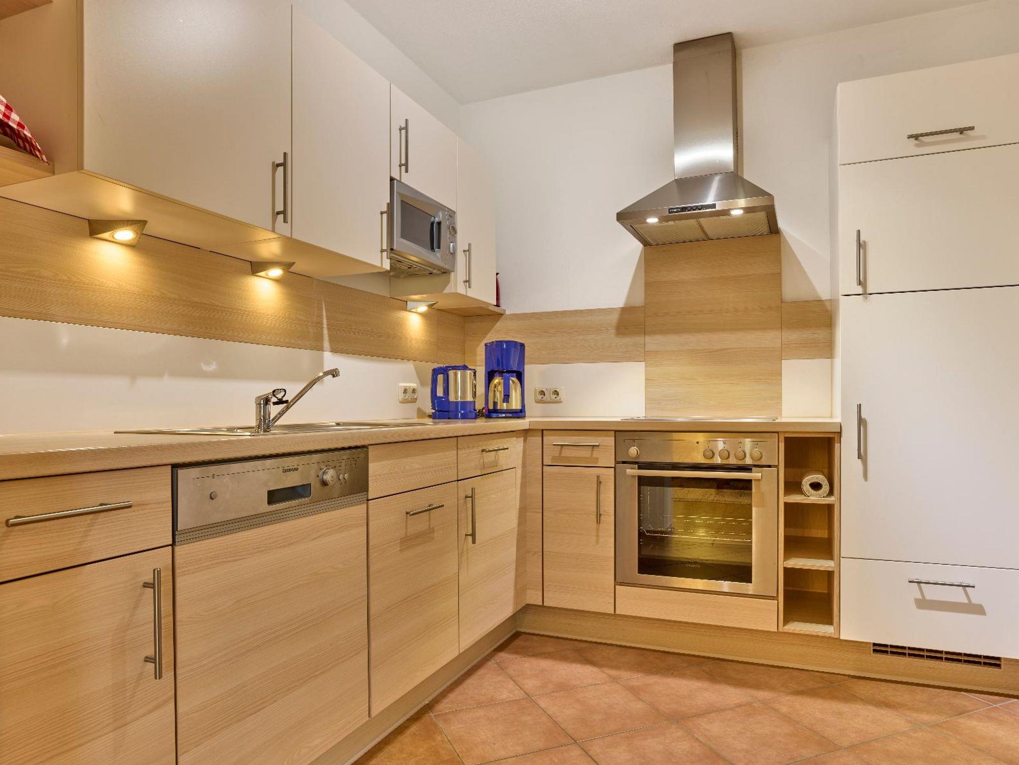 verfügt über eine modern eingerichtete Komfort- Einbauküche, einem