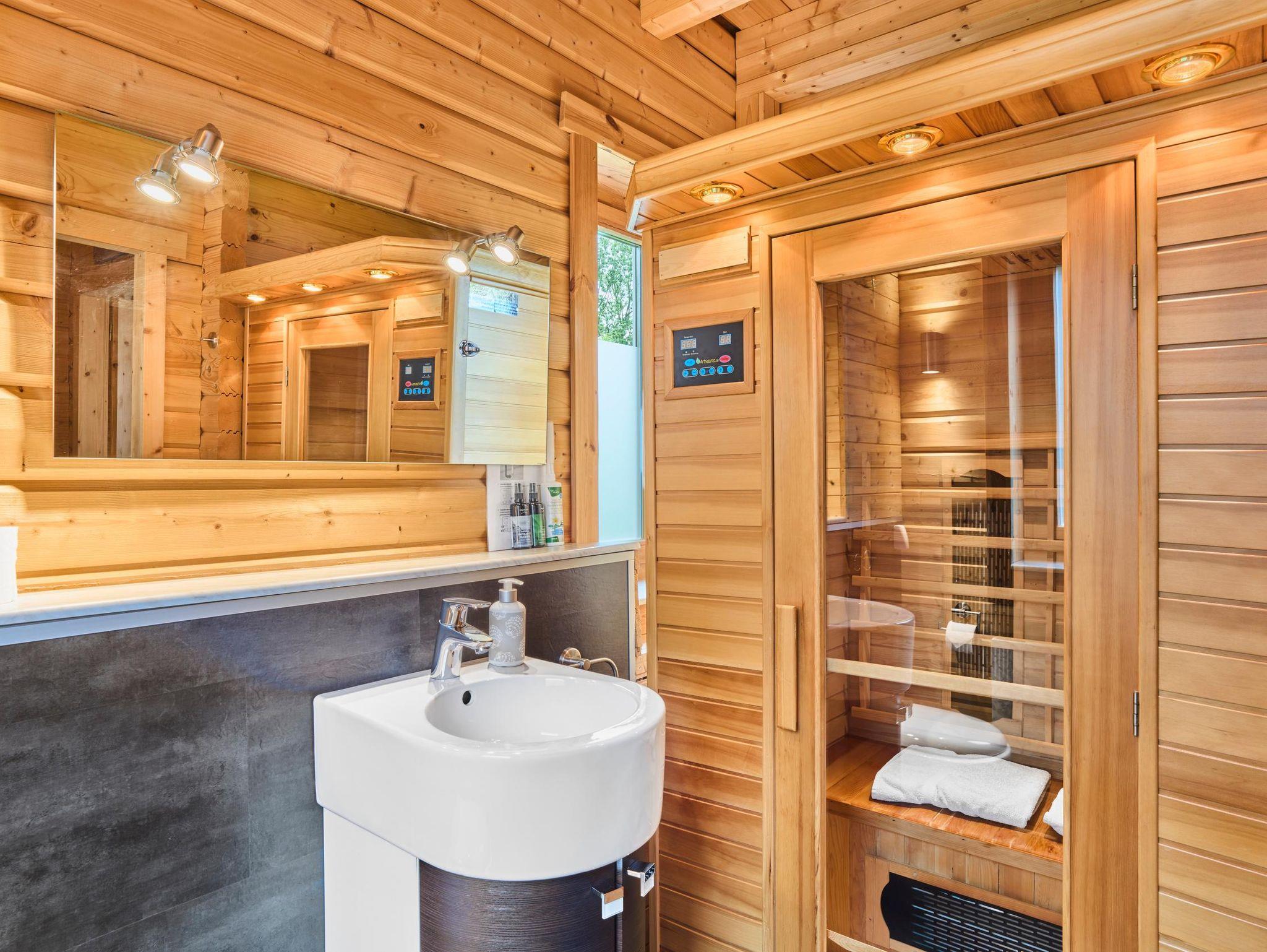 und einer Infrarotkabine ausgestattet. Die nach südosten ausgerichtete Terrasse bietet
