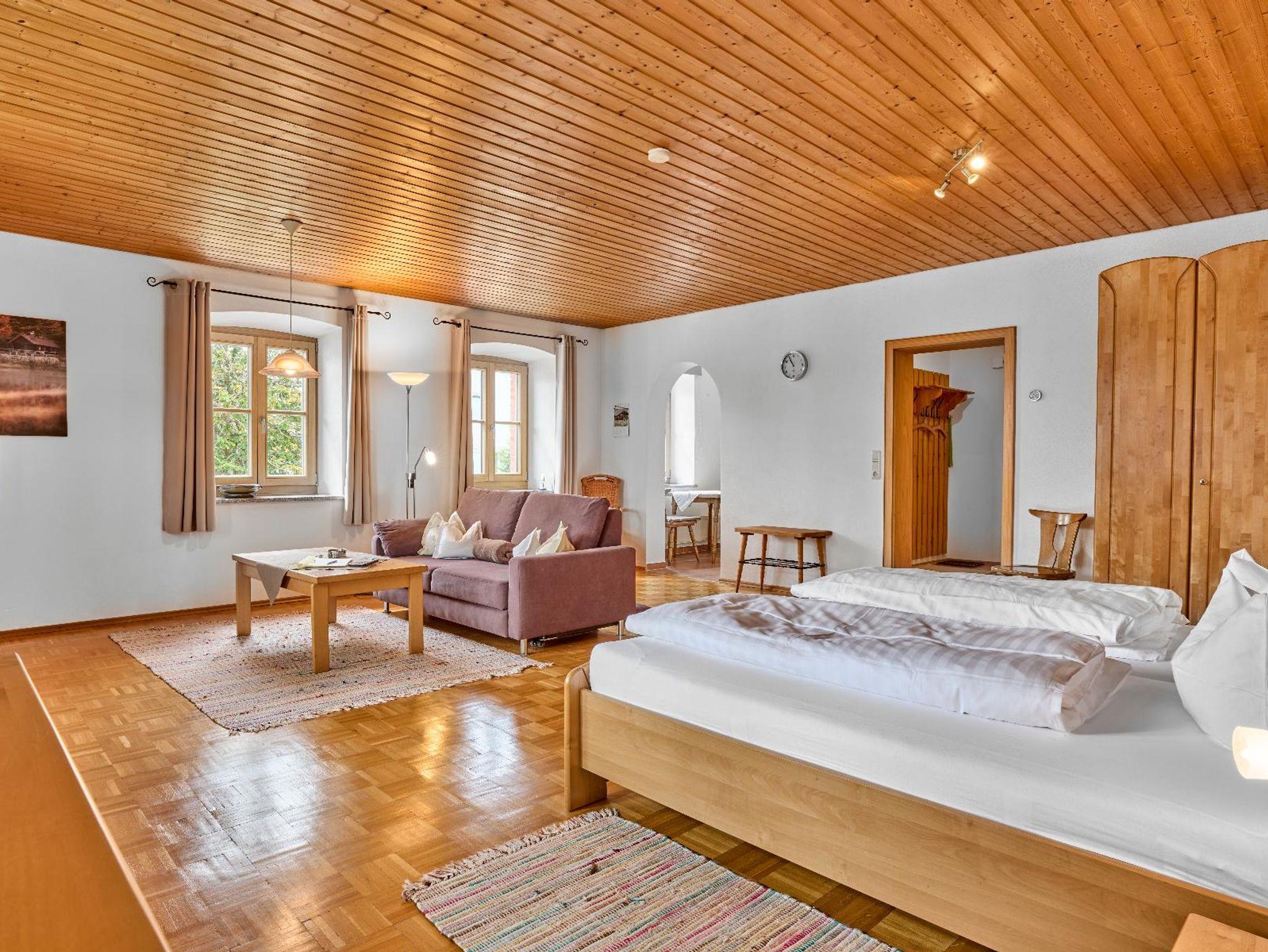 mit WC. Das geräumige Wohn-& Schlafzimmer ist mit einem Zugang zum