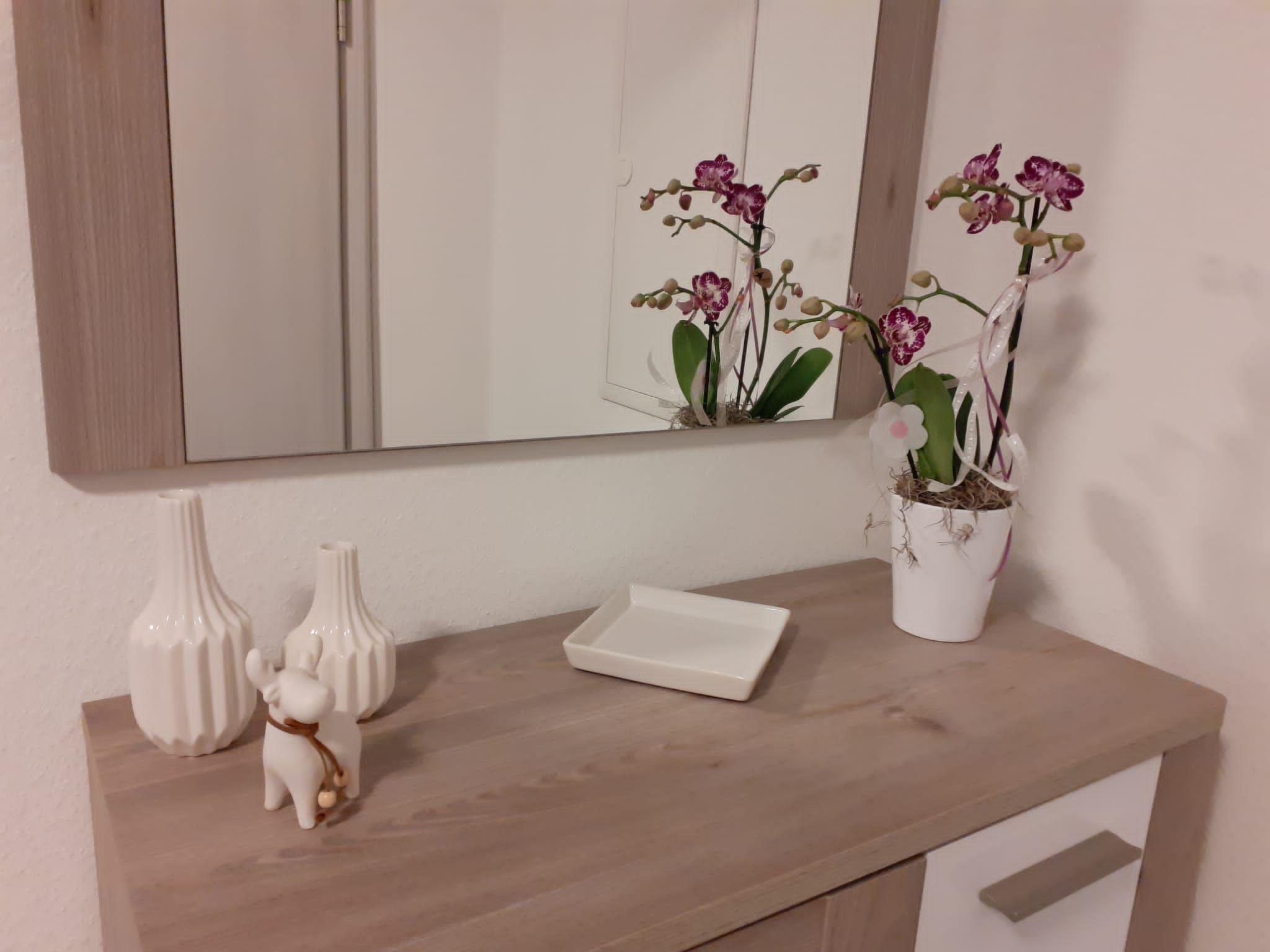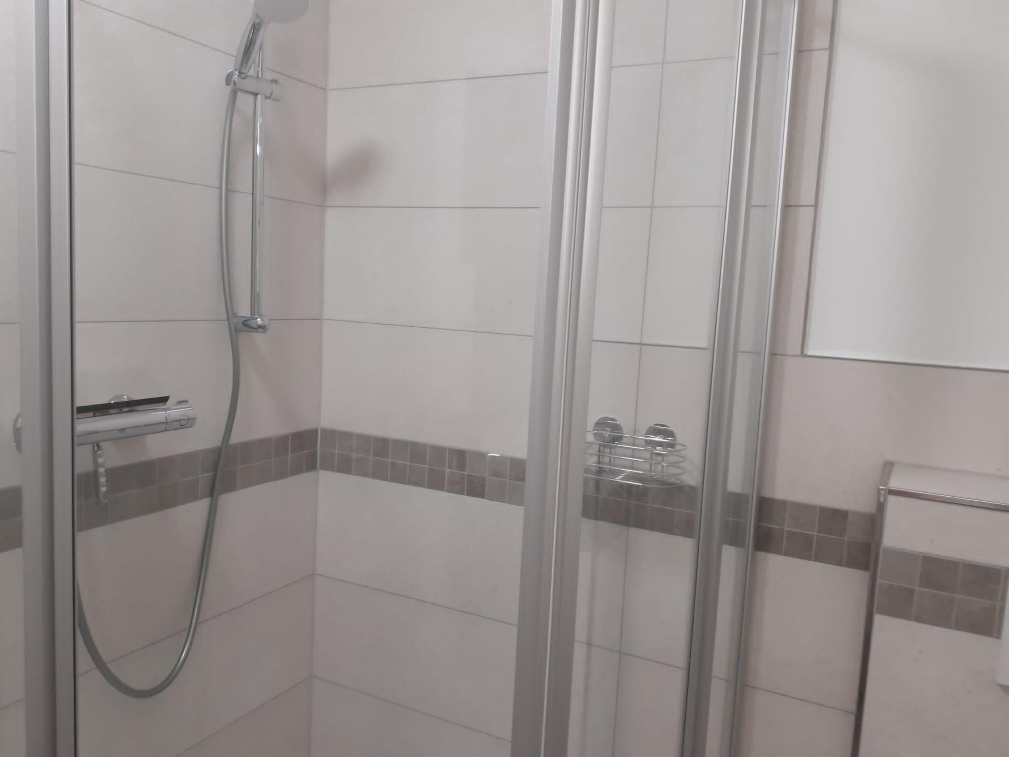 The beautiful and cosy basement flat is located in a quiet side street (play street) in the Obergartzem district. The holiday flat was completely renovated and refurbished in spring 2023. The house itself was completed in 2000. In addition to the hallway, shower room and kitchen, the flat has a bedroom with two single beds and a sofa bed in the living room (sleeping area 1.4 x 2 m). The living room has a bay window with 5 floor-to-ceiling windows facing the large outdoor terrace. The terrace itself is sheltered and offers enough space to spend time outdoors. There is a barbecue, a lounge set, two sun loungers and a parasol on the terrace.