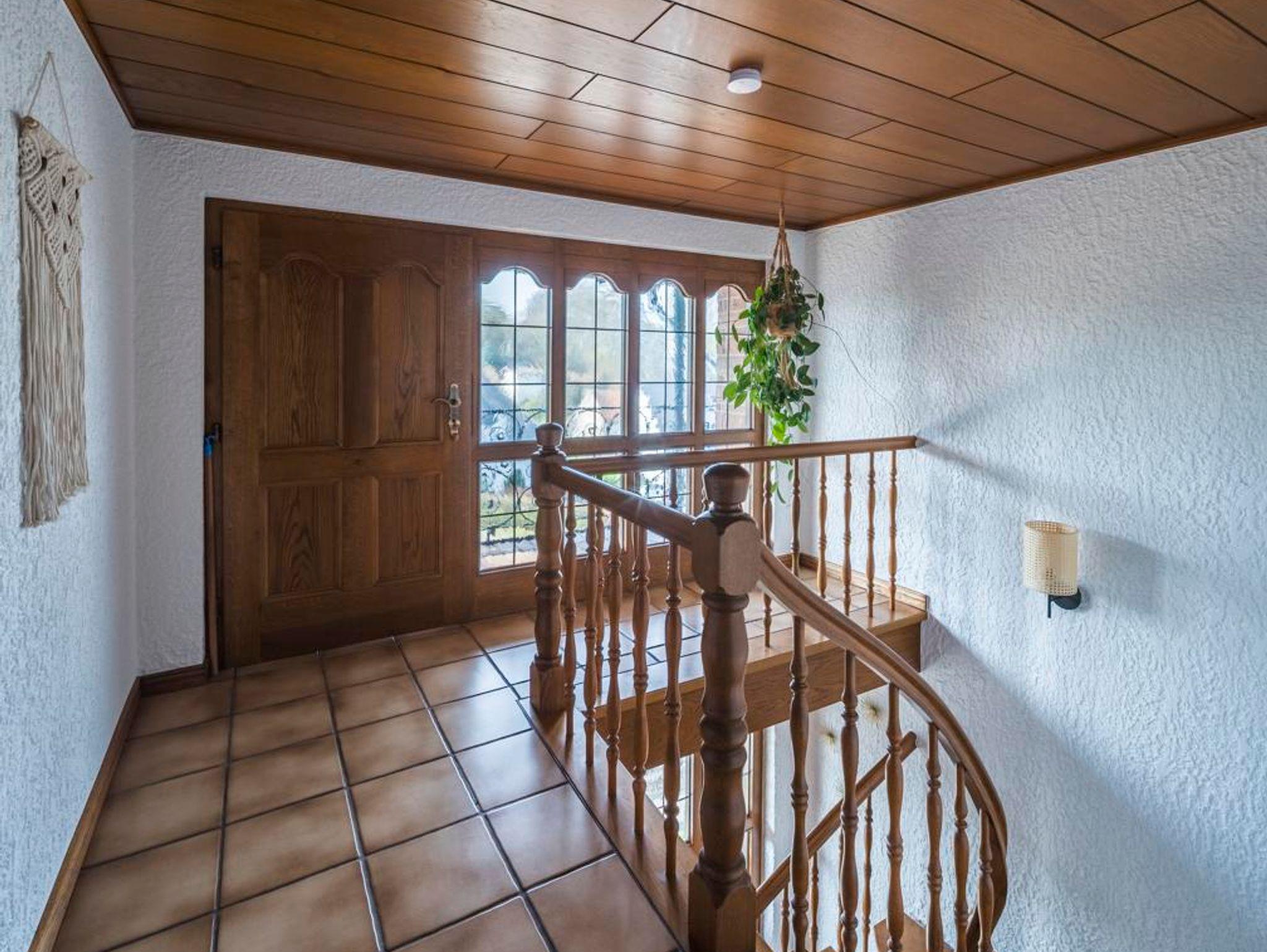 Dies befindet sich im Erdgeschoss und zusätzlich eine große Garderobe mit Spiegel, Extraraum für Staubsauger ect., ein großes Bad mit Waschmaschine und Trockner.