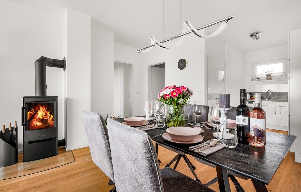 MEERCHENTRAUM fortjener med rette sit navn og inviterer jer til at drømme på ferie ved havet. Weidefelder-stranden er inden for synsvidde og kan nås til fods på få minutter. Her er garanteret skønne dage på, i og på vandet. Den maritime minigolfbane ligger i umiddelbar nærhed og byder på sjov for hele familien. Den åbne og rummelige stue/alrum byder jer velkommen med moderne møbler af høj kvalitet og stor sans for detaljer. Uanset hvordan I vender dig, kan I ikke undslippe udsigten over Østersøen, Slien og lystbådehavnen fra feriestedet Olpenitz ved Østersøen. En endeløs flade i blå nuancer strækker sig ud foran jer og er næsten utroligt. Og når I træder ud på den tilstødende terrasse, bliver I opmærksom på Østersøens urkraft. Oversvømmet med lys er den åbne stue/spisestue med sin store gulv-til-loft vinduesfront med direkte havudsigt en sand HAVDRØM! Den meget rummelige tilstødende terrasse er ligesom lejligheden indrettet med høj standard. Hele terrassen er omkranset af et lukket gelænder. Det veludstyrede tekøkken gør det sjovt at lave mad, ikke mindst på grund af den vidunderlige udsigt over det evigt skiftende hav. I den hyggelige opholdsstue med stort tv og pejs kan I slappe af og slappe af fra hverdagen selv på dårlige nordiske vejrdage. Udsigten over havet er der altid. Soveværelset er udstyret med dobbeltseng. Her finder I et ekstra fjernsyn. Et andet sted at sove er tilgængeligt på den komfortable sovesofa. Det rummelige brusebadeværelse med walk-in og barrierefri bruser er udstyret med alt hvad I behøver for at starte en vellykket feriedag. Den tilhørende parkeringsplads og den rummelige cykelkælder er også meget komfortable. Vores foretrukne sted: at starte dagen med en solid morgenmad på terrassen med udsigt til solen, der står op over havet... Bemærk venligst: OstseeResort Olpenitz er meget populært, og der bygges fortsat i parken. Ikke desto mindre kan I se frem til en 5-stjernet standard og et førsteklasses ophold. Byggeaktiviteterne kommer ikke til at forstyrre jer på ferien, og derfor gives der ikke yderligere afslag i prisen.