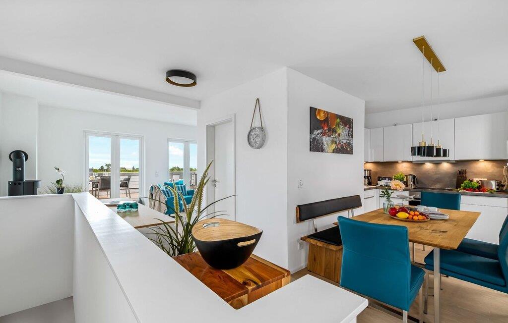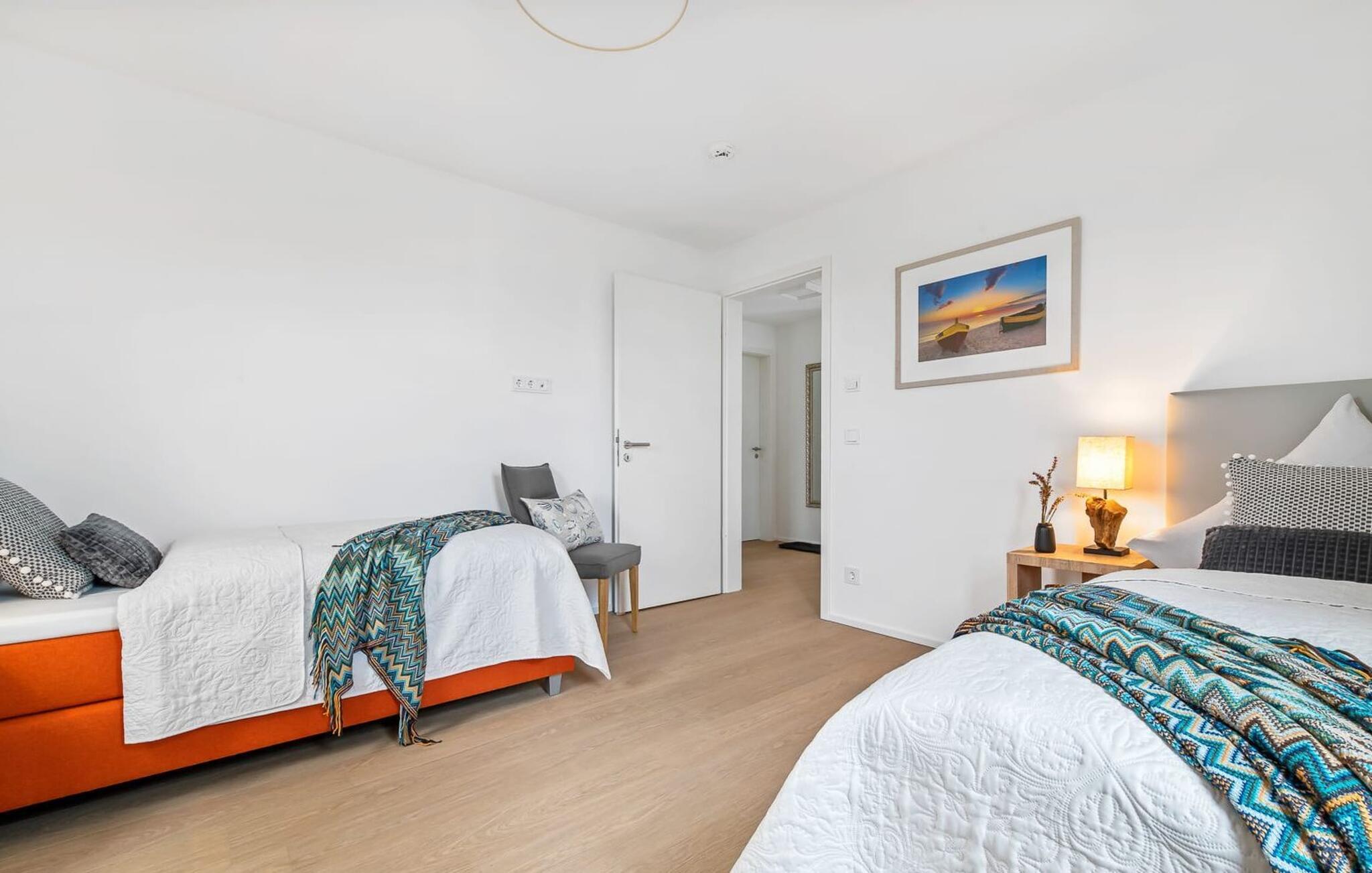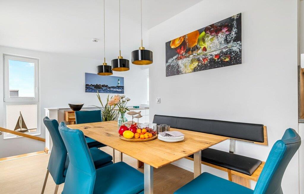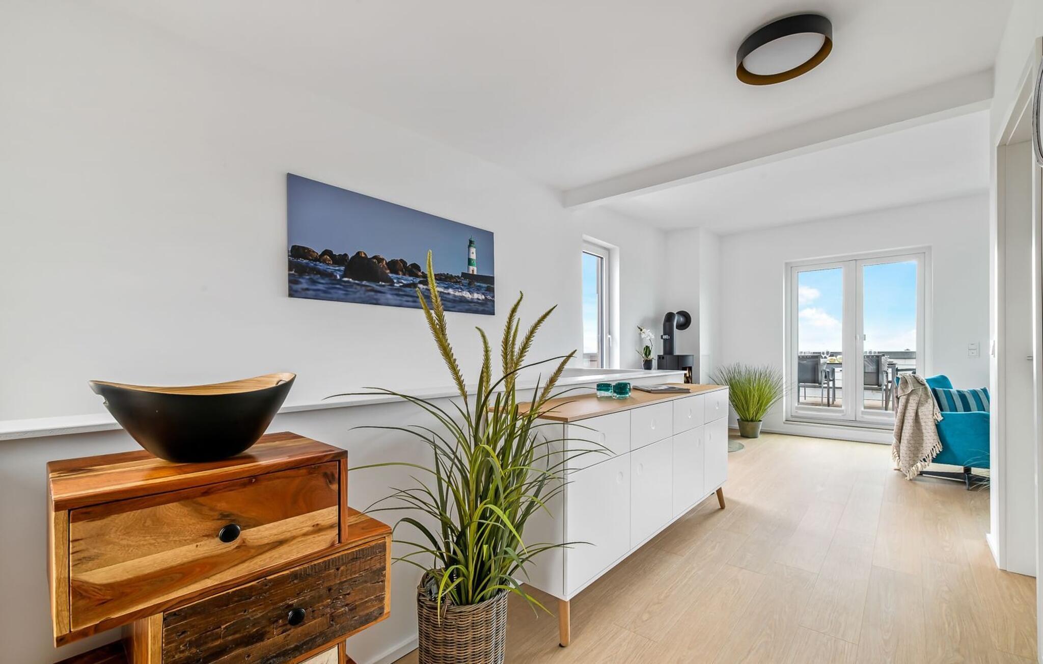 Den rummelige maisonette-ferielejlighed Sea Lights til 6 personer i en rolig beliggenhed i udkanten af resortet ligger på første og anden sal og imponerer med sin stilfulde indretning af høj kvalitet. Der blev lagt særlig vægt på kunstfotos og billeder af regionale kunstnere, der afspejler den fortryllende flair i Schlei-regionen. Den smukke Weidefelder sandstrand med kiosk, restaurant og strandstole kan nås til fods på kun 10 minutter og er en attraktiv destination på alle tider af året. I den varme årstid kan I svømme, grave og plaske rundt her. Alle former for vandsport er mulige her. Den maritime eventyr-minigolfbane ligger også i umiddelbar nærhed og glæder både store og små. Når I træder ind i ferielejligheden på øverste etage, begynder opbremsningen fra første øjeblik. I er direkte i lejlighedens afslapningsområde. Der er plads til op til 6 personer i tre soveværelser med komfortable senge. To af soveværelserne er også udstyret med fjernsyn. Uanset hvilket soveværelse I vælger, kan I være sikker på en afslappende søvn. Også på denne etage er jeres helt egen oase af velvære med en regnbruser på gulvniveau og infrarød sauna. Når I ankommer til anden sal, venter den eksklusivt møblerede opholdsstue med maritim flair og gulv til loft vinduer på jer. At slappe af i den hyggelige opholdsstue, nyde den knitrende ild i pejsen eller se tv er ren afslapning og afslapning! Direkte fra stuen kommer man ind på den store østvendte terrasse. Her kan I nyde solopgange og afslappet morgenmad i Østersøens sol og udsigt over havet og engene i det direkte tilstødende naturreservat med Canada og vilde gæs og til sportshavnen på den anden side. Det moderne, åbne køkken med en hyggelig spiseplads er fuldt udstyret og vil få amatørkokkenes hjerter til at slå hurtigere. Her er der plads til kulinariske udflugter. Et andet komplet badeværelse med bruser og badekar afrunder ideelt set hele pakken til en afslappende ferie. Foran ferielejligheden finder I to private parkeringspladser med ladestation til elbiler og cykelskur. Vores foretrukne sted: at nyde den betagende solopgang over ORO tidligt om morgenen... Bemærk venligst: OstseeResort Olpenitz er meget populært, og der bygges fortsat i parken. Ikke desto mindre kan I se frem til en 5-stjernet standard og et førsteklasses ophold. Byggeaktiviteterne kommer ikke til at forstyrre jer på ferien, og derfor gives der ikke yderligere afslag i prisen.
