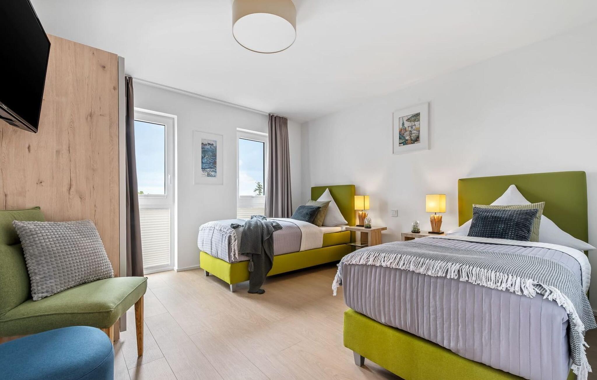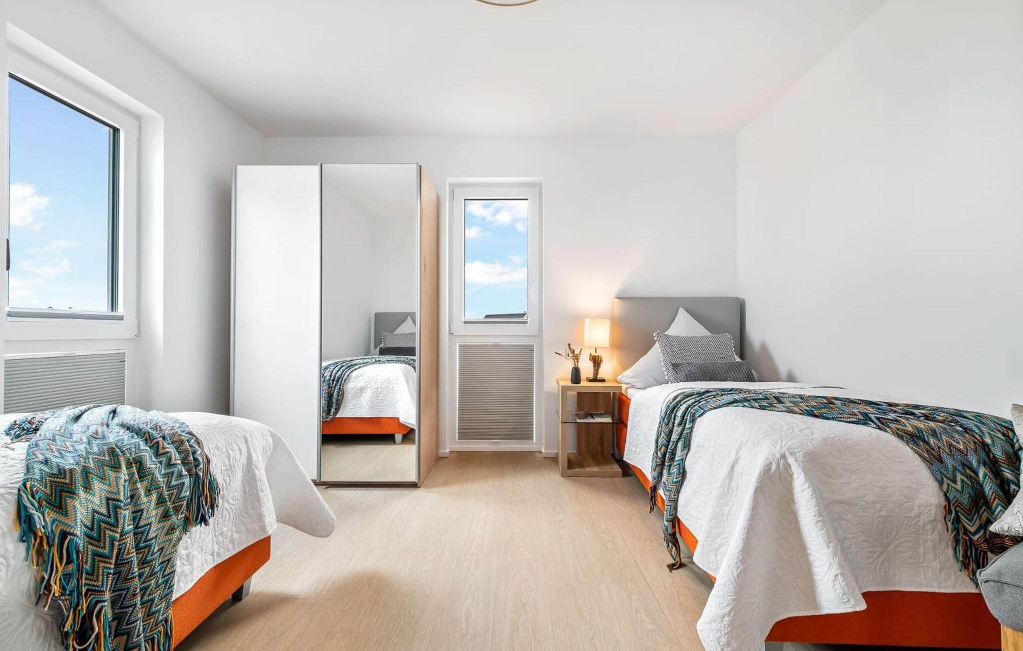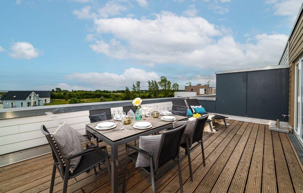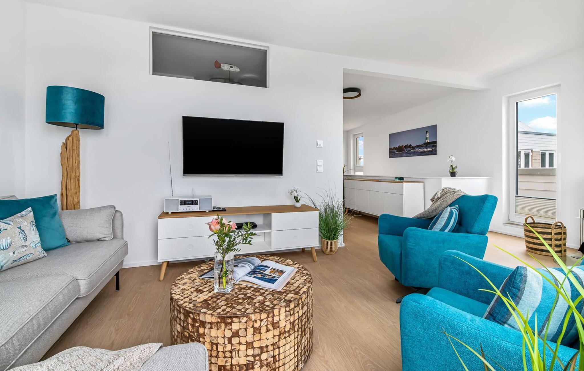 Den rummelige maisonette-ferielejlighed Sea Lights til 6 personer i en rolig beliggenhed i udkanten af resortet ligger på første og anden sal og imponerer med sin stilfulde indretning af høj kvalitet. Der blev lagt særlig vægt på kunstfotos og billeder af regionale kunstnere, der afspejler den fortryllende flair i Schlei-regionen. Den smukke Weidefelder sandstrand med kiosk, restaurant og strandstole kan nås til fods på kun 10 minutter og er en attraktiv destination på alle tider af året. I den varme årstid kan I svømme, grave og plaske rundt her. Alle former for vandsport er mulige her. Den maritime eventyr-minigolfbane ligger også i umiddelbar nærhed og glæder både store og små. Når I træder ind i ferielejligheden på øverste etage, begynder opbremsningen fra første øjeblik. I er direkte i lejlighedens afslapningsområde. Der er plads til op til 6 personer i tre soveværelser med komfortable senge. To af soveværelserne er også udstyret med fjernsyn. Uanset hvilket soveværelse I vælger, kan I være sikker på en afslappende søvn. Også på denne etage er jeres helt egen oase af velvære med en regnbruser på gulvniveau og infrarød sauna. Når I ankommer til anden sal, venter den eksklusivt møblerede opholdsstue med maritim flair og gulv til loft vinduer på jer. At slappe af i den hyggelige opholdsstue, nyde den knitrende ild i pejsen eller se tv er ren afslapning og afslapning! Direkte fra stuen kommer man ind på den store østvendte terrasse. Her kan I nyde solopgange og afslappet morgenmad i Østersøens sol og udsigt over havet og engene i det direkte tilstødende naturreservat med Canada og vilde gæs og til sportshavnen på den anden side. Det moderne, åbne køkken med en hyggelig spiseplads er fuldt udstyret og vil få amatørkokkenes hjerter til at slå hurtigere. Her er der plads til kulinariske udflugter. Et andet komplet badeværelse med bruser og badekar afrunder ideelt set hele pakken til en afslappende ferie. Foran ferielejligheden finder I to private parkeringspladser med ladestation til elbiler og cykelskur. Vores foretrukne sted: at nyde den betagende solopgang over ORO tidligt om morgenen... Bemærk venligst: OstseeResort Olpenitz er meget populært, og der bygges fortsat i parken. Ikke desto mindre kan I se frem til en 5-stjernet standard og et førsteklasses ophold. Byggeaktiviteterne kommer ikke til at forstyrre jer på ferien, og derfor gives der ikke yderligere afslag i prisen.