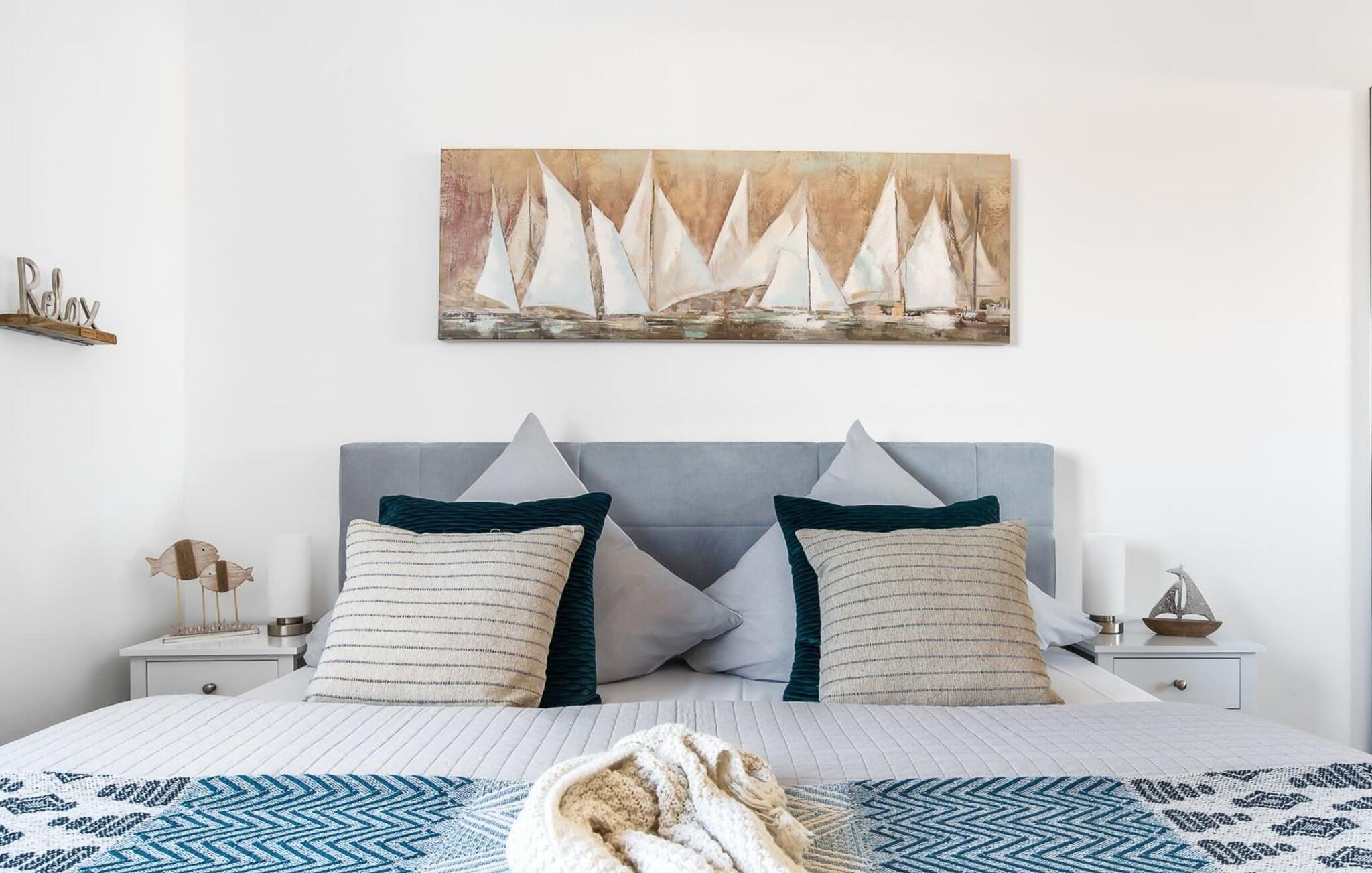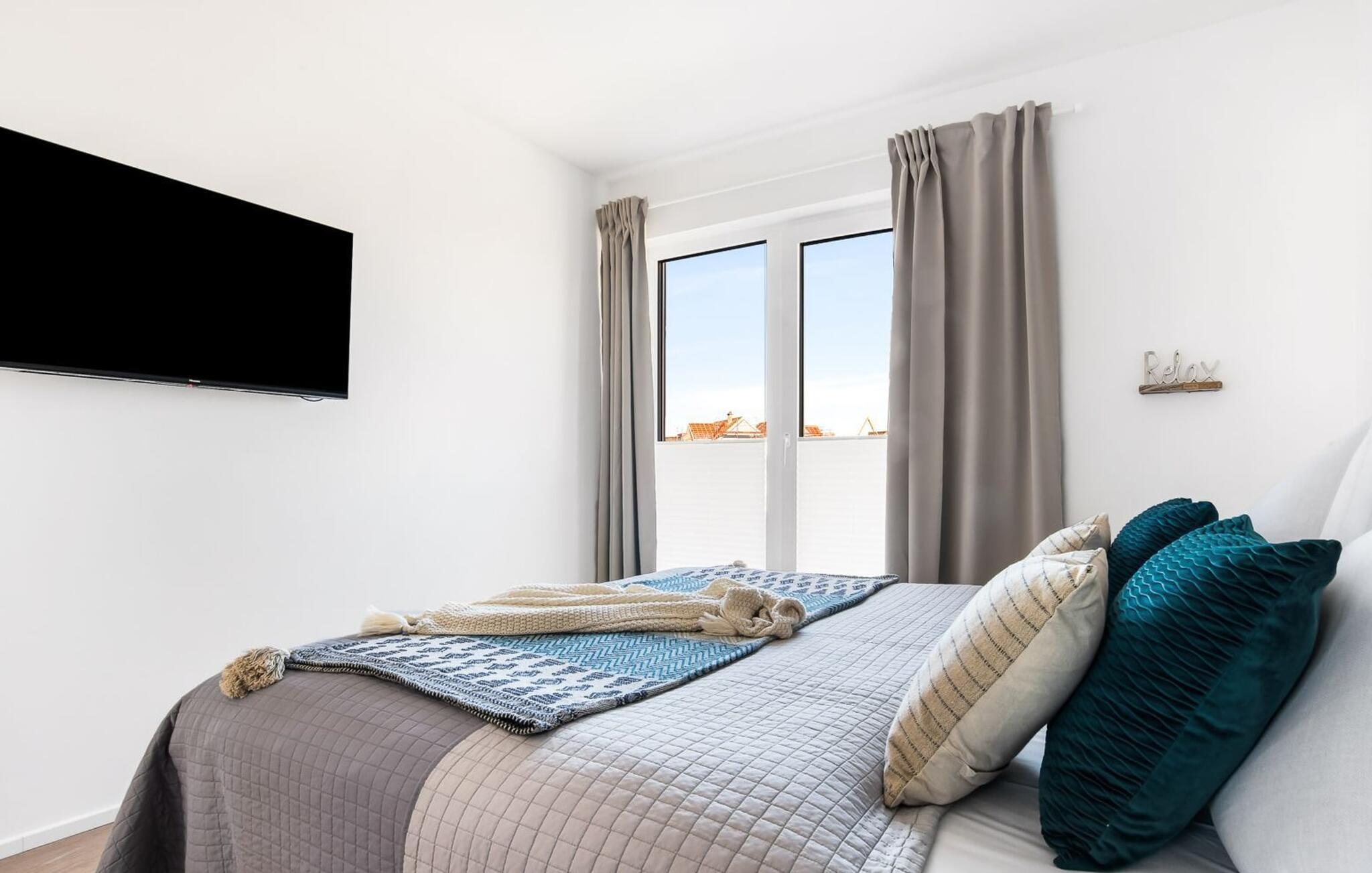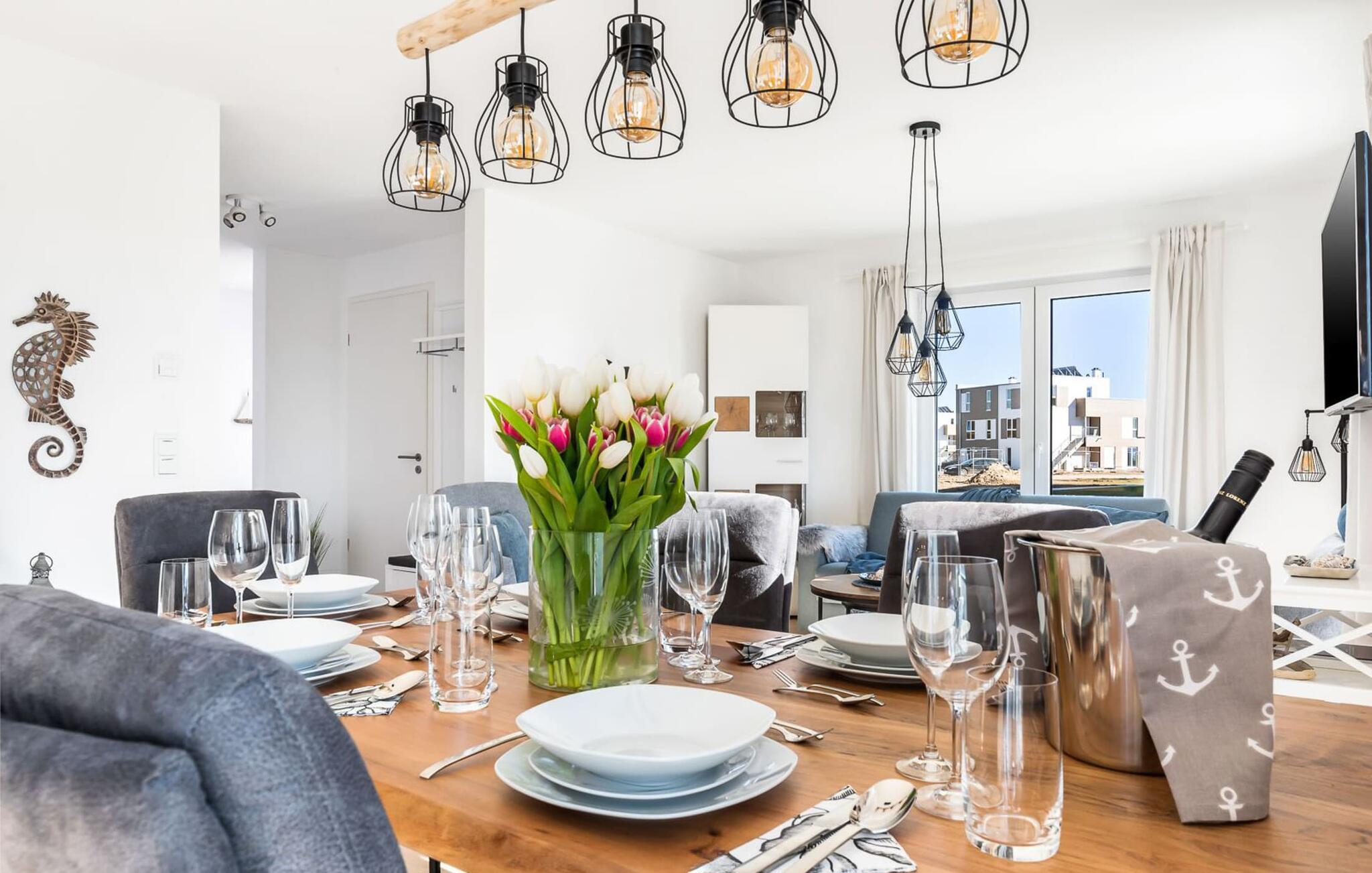 MeeresZauber er en rummelig og rummelig ferielounge i stueetagen med direkte udsigt over de naturbevarende strandenge og marker. Den naturlige sandstrand Weidefelder med kiosk, restaurant, strandstole og forskellige muligheder for vandsport kan nås på få hundrede meter. Firbenede venner kan også slippe dampen ud på hundestranden bagerst. I umiddelbar nærhed er der også den fantasifuldt designede Adventure Golf minigolfbane og lystbådehavnen i OstseeResort Olpenitz med forskellige indkøbsmuligheder. Med vinduesfronten fra gulv til loft og den store tilstødende terrasse er den åbne stue/alrum lejlighedens hjerte. De lyse værelser og moderne indretning får jer til at føle jer velkommen fra første øjeblik. Den hyggelige opholdsstue inviterer til afslapning og den knitrende pejs gør det rigtig hyggeligt selv på dårlige vejrdage. Det fuldt udstyrede køkken får amatørkokkenes hjerter til at slå hurtigere. At lave mad sammen er sjovt her! Direkte fra stuen kommer man ind på den store sydvendte terrasse. Her er terrassemøbler og grill til rådighed for at nyde Østersøsolen eller for at afslutte dagen med en grillaften sammen. To soveværelser med komfortable dobbelte boxmadrasser er tilgængelige til afslapning om natten. Derudover er begge soveværelser hver udstyret med et fjernsyn. Babyer er også velkomne, da en rejseseng og høj stol er til rådighed. Bruserummet med en regnbruser på gulvniveau og en infrarød sauna sikrer uforglemmelige wellness-øjeblikke, der runder en perfekt feriedag af. Det er også praktisk at have egen parkeringsplads lige foran ferielejligheden. Vores yndlingssted: gå langs naturstien på den korteste vej til Weidefelder-stranden, slap af, hop i det kølige vand i Østersøen og nyd havets magi... Bemærk venligst: OstseeResort Olpenitz er meget populært, og der bygges fortsat i parken. Ikke desto mindre kan I se frem til en 5-stjernet standard og et førsteklasses ophold. Byggeaktiviteterne kommer ikke til at forstyrre jer på ferien, og derfor gives der ikke yderligere afslag i prisen.
