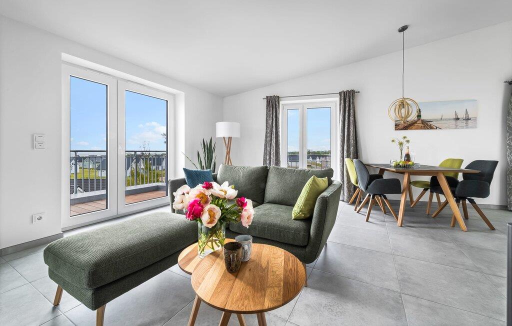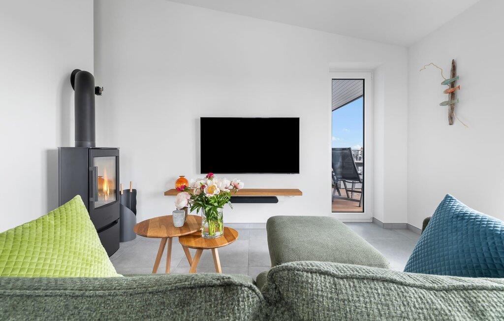 Penthouselejligheden MEERFÜRZWEI er ideelt placeret mellem den livlige havnepromenade og den omfattende Weidefelder-strand. Denne ferielejlighed er ikke kun imponerende på grund af sin centrale beliggenhed, men også udsigten til det omgivende vand fra alle vinduer. Den unikke udsigt over Slien og Østersøen inviterer jer til at slappe af og slappe af i denne lejlighed. Havnepromenaden i OstseeResort Olpenitz med dets voksende udbud og indkøbsmuligheder samt sejl- og sportsbådshavnen i OstseeResort Olpenitz kan nås til fods. Den maritime minigolfbane ligger i umiddelbar nærhed og byder på masser af variation og sjov. MEERFÜRZWEI sikrer en atmosfære fra første minut, takket være lejlighedens åbne plan og de lyse rum med højt til loftet. Den åbne stue/alrum med integreret køkken af høj kvalitet oversvømmes af lys takket være vinduesfronten fra gulv til loft og byder på en unik udsigt. Udover den behagelige sofa med fjernsyn, finder I pejsen foran, hvor I kan nyde samværet i det nordiske vejr. Fra stuen er der udgang til den overdækkede tagterrasse. Nyd solen på den medfølgende loungesofa og flygt fra hverdagen. Spisepladsen på tagterrassen indbyder til en hyggelig spilleaften. En elektrisk bordgrill er tilgængelig til afslappede grillaftener. Soveværelset er ligeledes af høj kvalitet og smagfuldt indrettet og byder på en umiskendelig udsigt til solopgangen fra sengen. Hvis vejret er for gråt til at se udenfor, er der et fjernsyn i soveværelset til underholdning. En afslappende søvn er garanteret, og de smukke drømme kommer naturligt. Et andet højdepunkt er bruserummet med dagslys. Efter en lang dag på stranden kan I nyde et regnbruser på gulvniveau. En parkeringsplads ved huset og en opladningsmulighed for elbiler er til rådighed for jer. Muligheden for direkte online fakturering sikrer, at ladestationen er nem at bruge. I kælderen har I en ekstra opladningsmulighed for el-cykler og et sted at opbevare jeres cykel. Penthouselejligheden kan nemt nås via en elevator. Vores favoritsted: Nyd udsigten over havet for to fra tagterrassen med en kølig drink. Bemærk venligst: OstseeResort Olpenitz er meget populært, og der bygges fortsat i parken. Ikke desto mindre kan I se frem til en 5-stjernet standard og et førsteklasses ophold. Byggeaktiviteterne kommer ikke til at forstyrre jer på ferien, og derfor gives der ikke yderligere afslag i prisen.