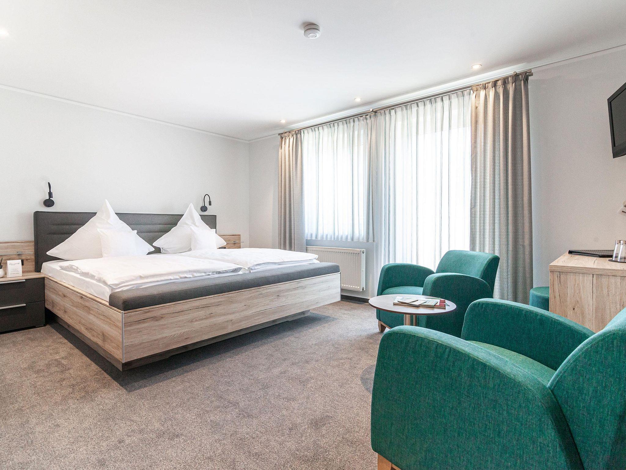 Ruhiges Doppelzimmer mit Dusche/WC, TV und Balkon