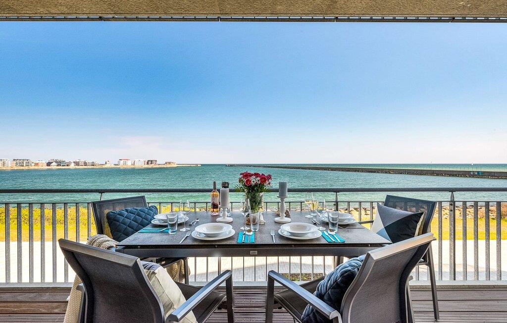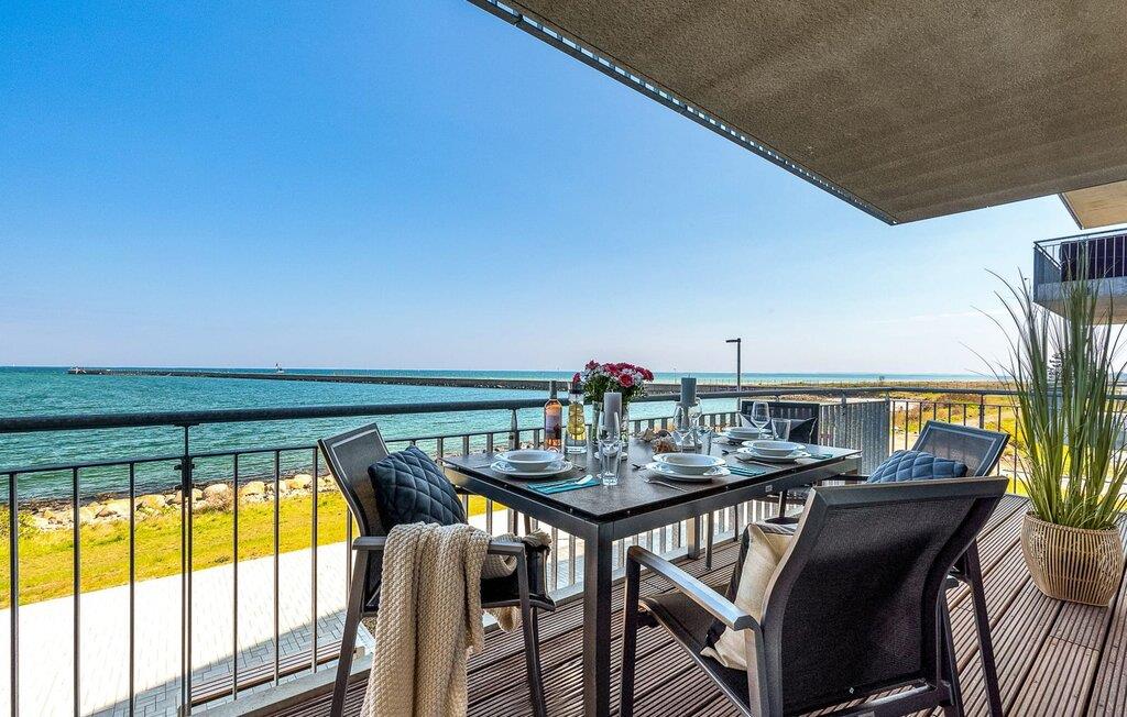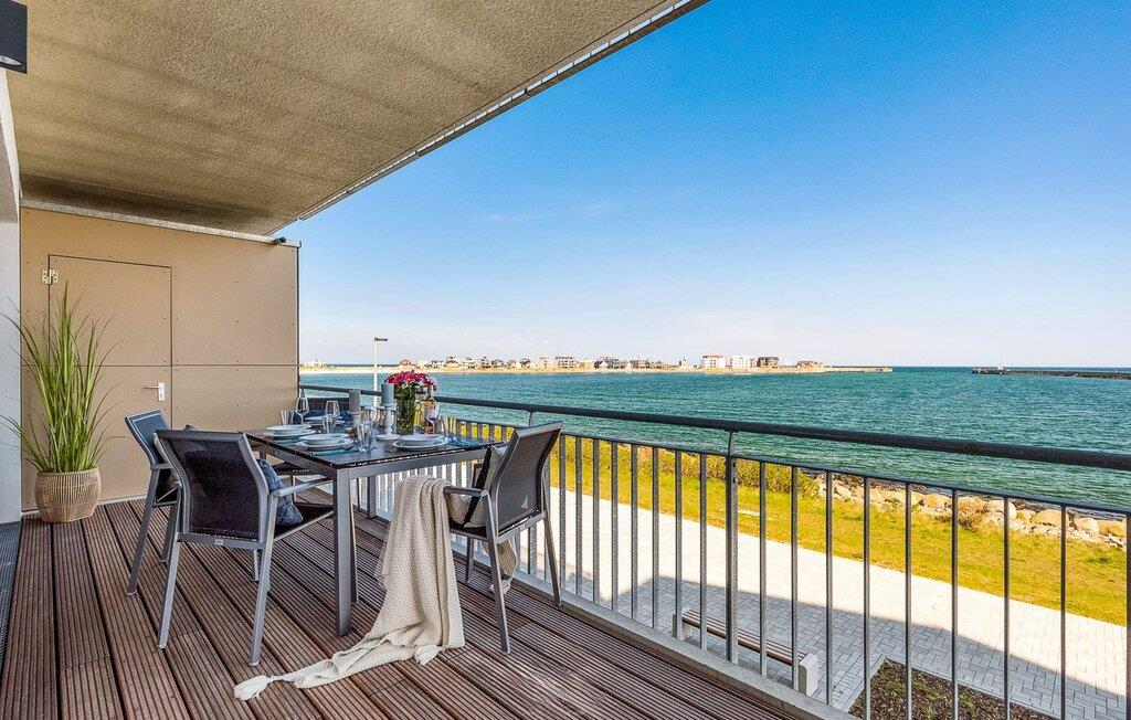 Fra hele opholds- og spisestuen har I en betagende udsigt over Østersøen og lystbådehavnen i feriestedet Olpenitz ved Østersøen. I kan se skibe og sejlbåde sejle ud i Østersøen. Dette er en udsigt, der er svær at slå!