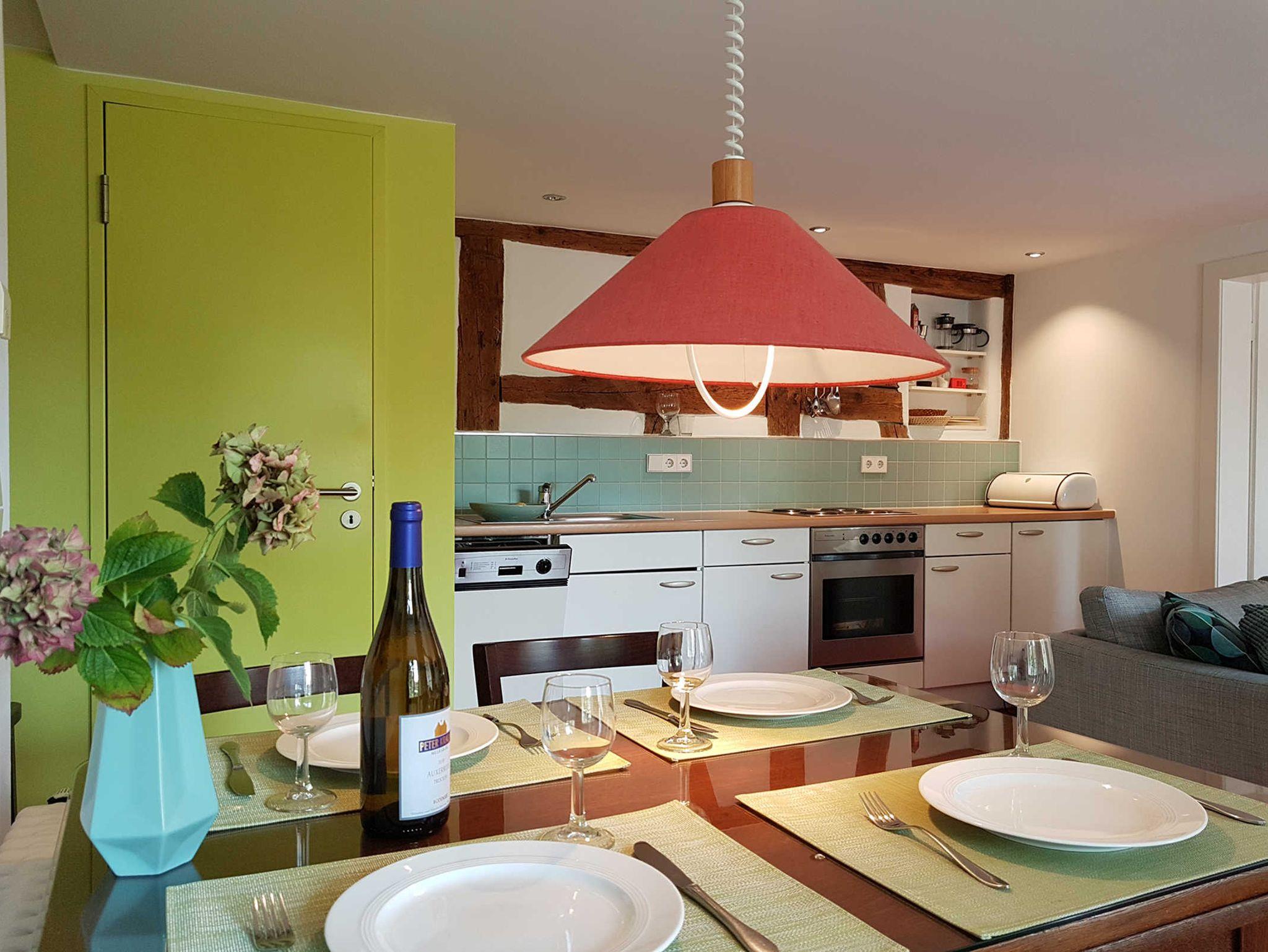 Die Wohnungen mit geschmackvollem Ambiente im historischen Gebäude sind komfortabel und familienfreundlich eingerichtet. 3-Zi-Wohnungen mit 2 separaten Schlafzimmern und kompletter Küche. Ganzjährig geöffnet.