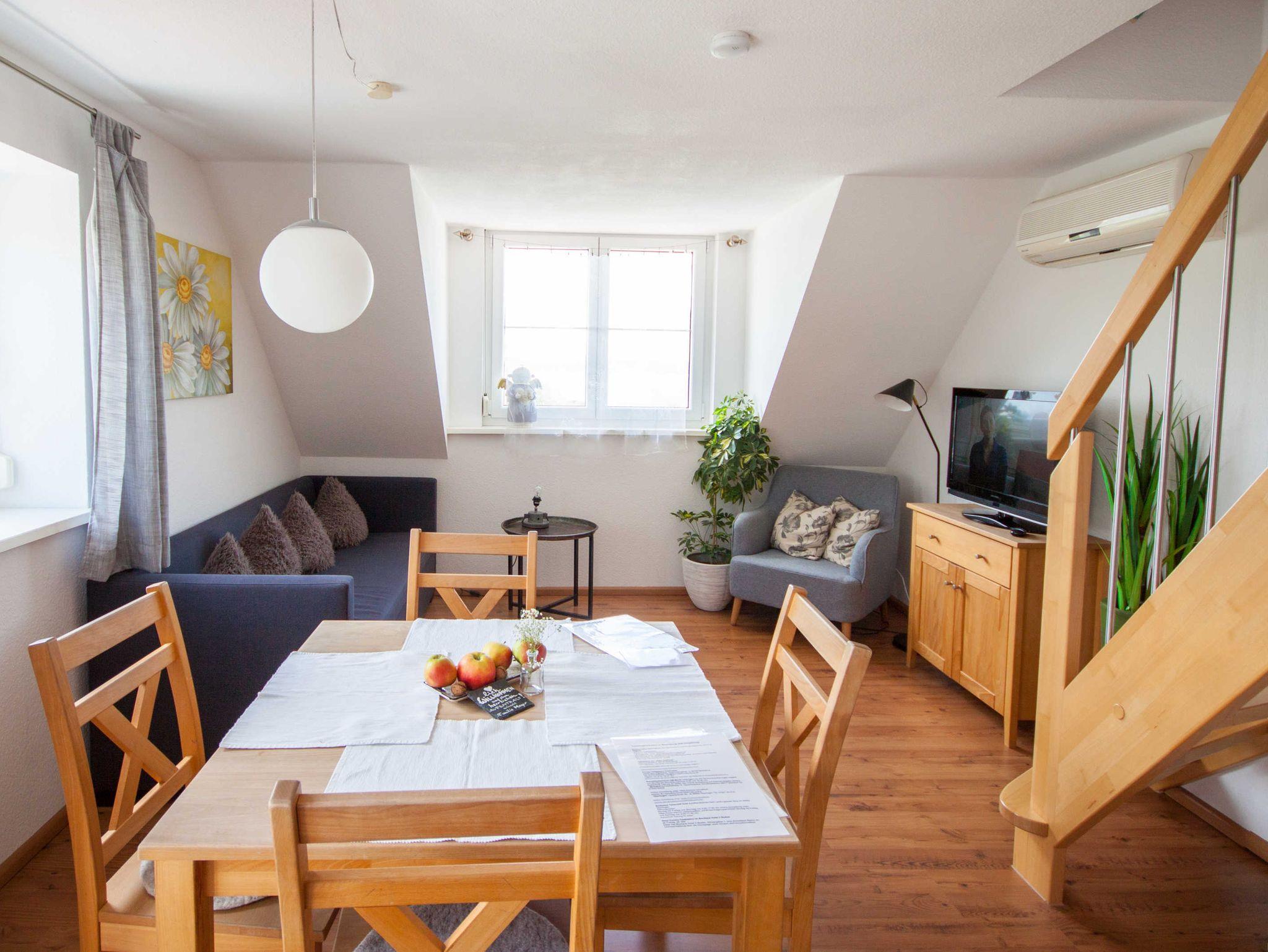 Neu erbaute helle Ferienwohnungen in gepflegtem Ambiente mit wunderschöner Sicht über die Weinberge und die historische Altstadt mit See- und Alpenpanorama.