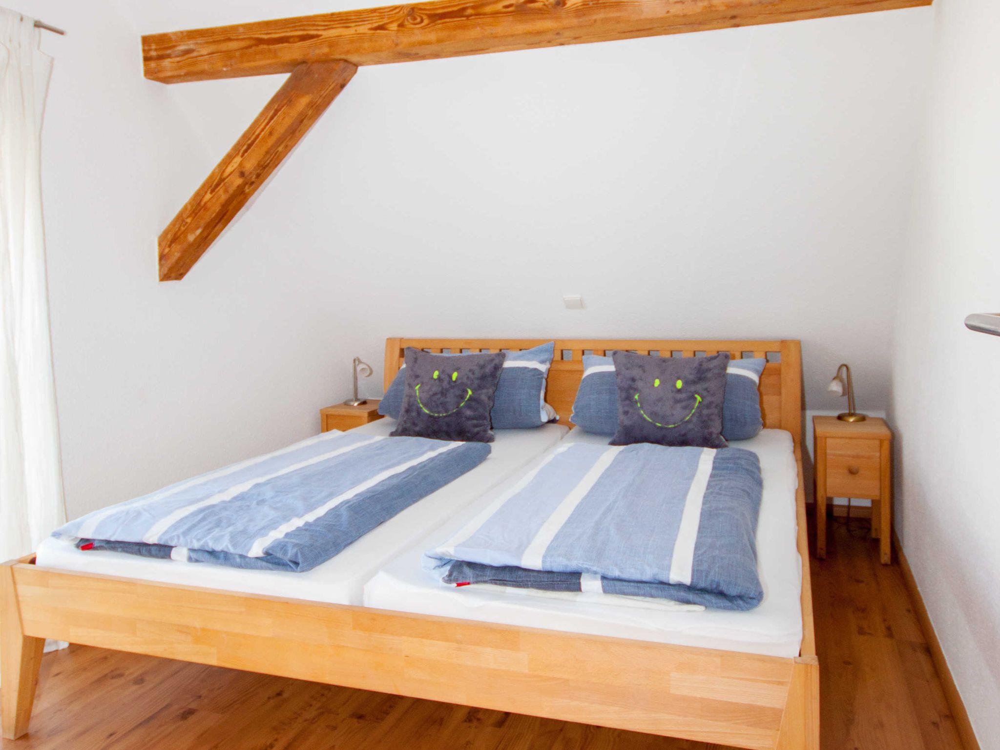 Drei-Zimmer-Wohnungen mit je zwei separaten Schlafzimmern; eines mit Doppelbett ausgestattet, das andere mit zwei großen Einzelbetten - also auch für Erwachsene geeignet. Familienfreundlich, Parkplatz am Haus, 3 Minuten zu Stadt und See. Hauseigener Fahrradverleih. Ganzjährig geöffnet. Wir freuen uns auf Sie!