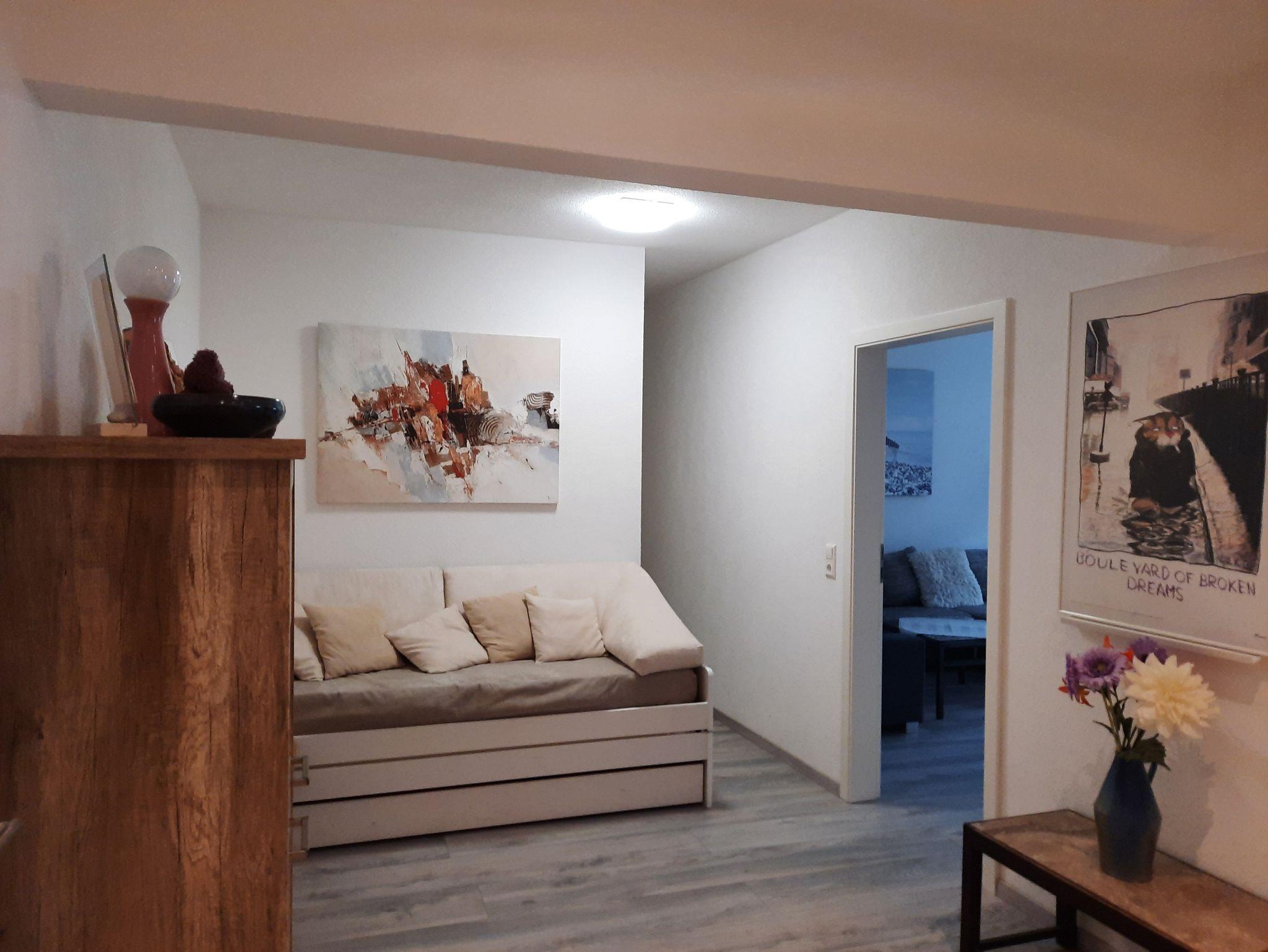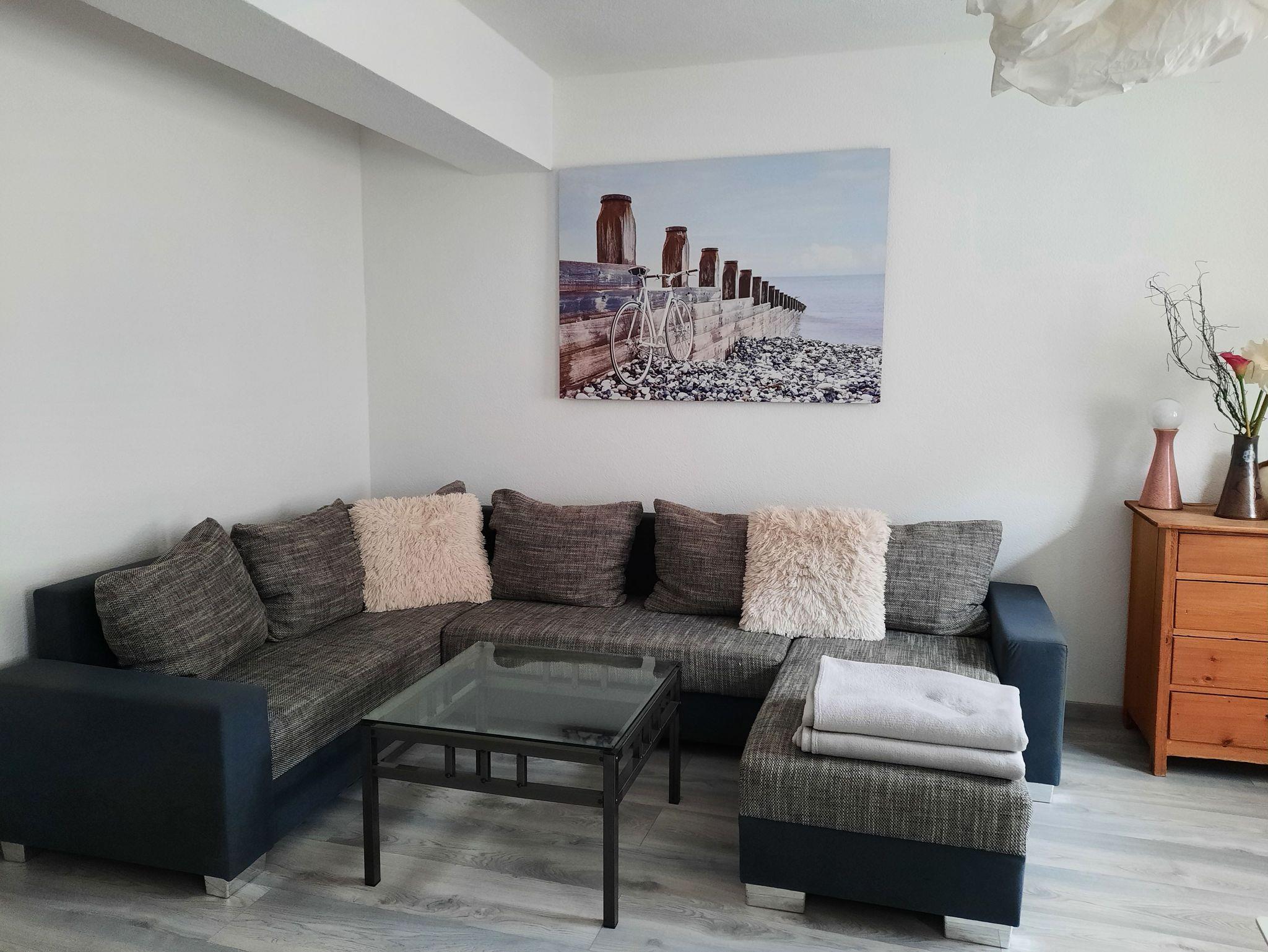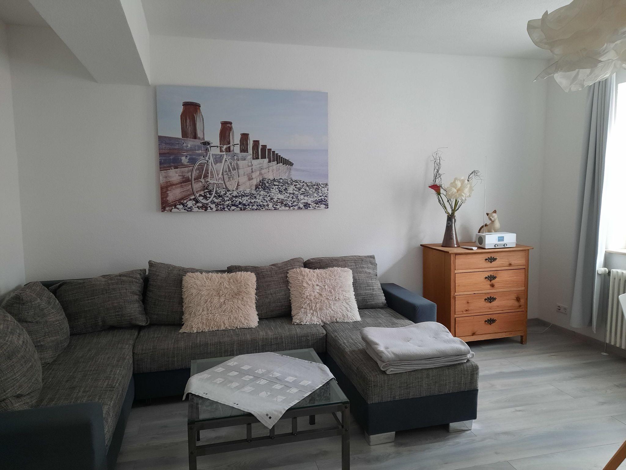 Diese liebevoll eingerichtete Wohnung hat großzügige 55m² Wohnfläche. Die Besonderheit dieser Wohnung, ist das Durchgangszimmer, dass ein Schlafsofa enthält. Falls bspw. Bekannte miteinander verreisen, die gerne getrennt von einander schlafen möchten, wäre das hier kein Problem. Gerne funktionieren wir das Sofa als Bett um. Die Wohnung ist voll ausgestattet mit Bettwäsche, Handtüchern, Kaffeemaschine, Toaster, voll eingerichteter Küche und auch Spülmaschine. Das Bad ist geräumig und mit einem Fenster versehen, auch in diesem Bad ist die Dusche ebenerdig.