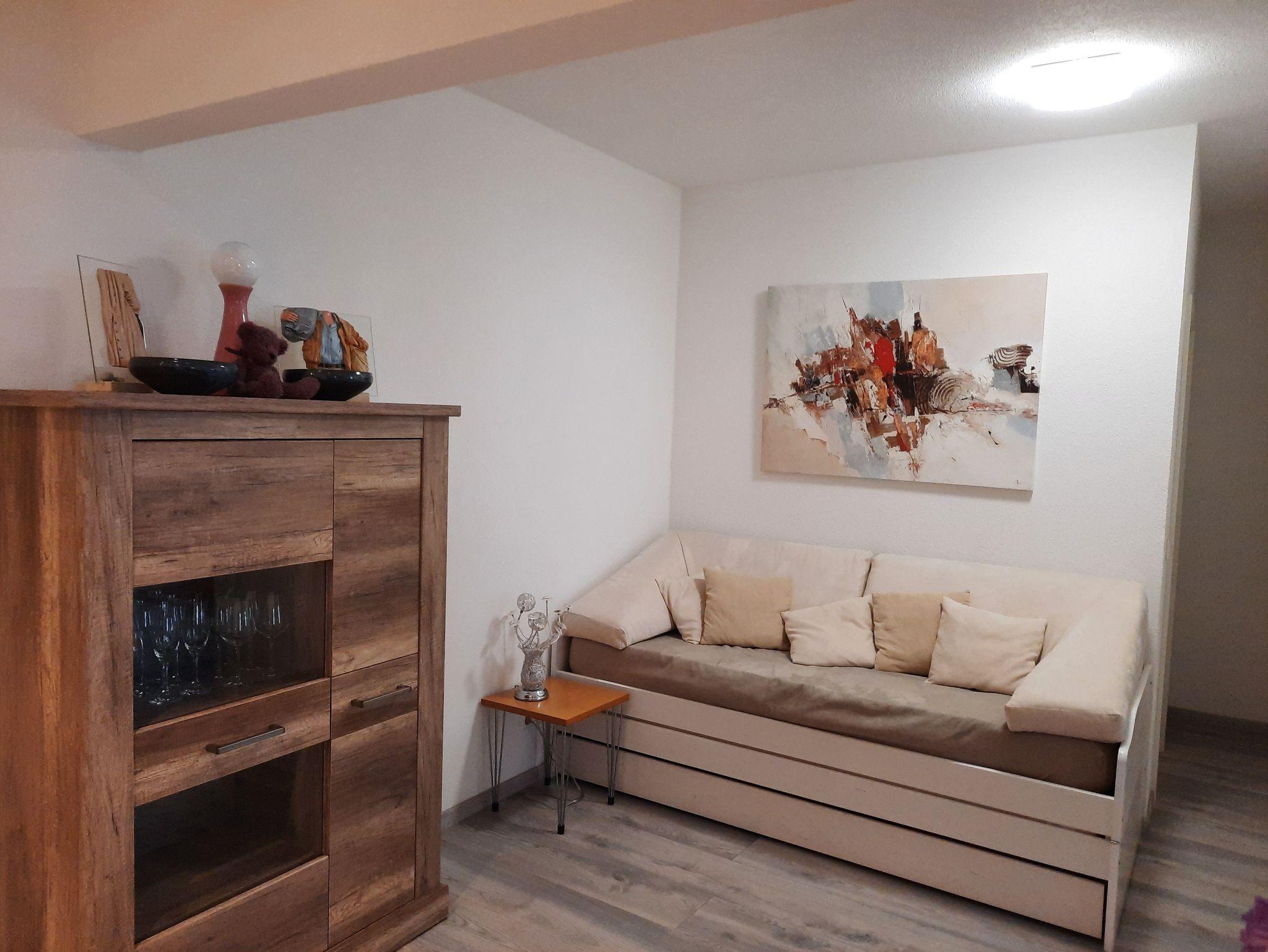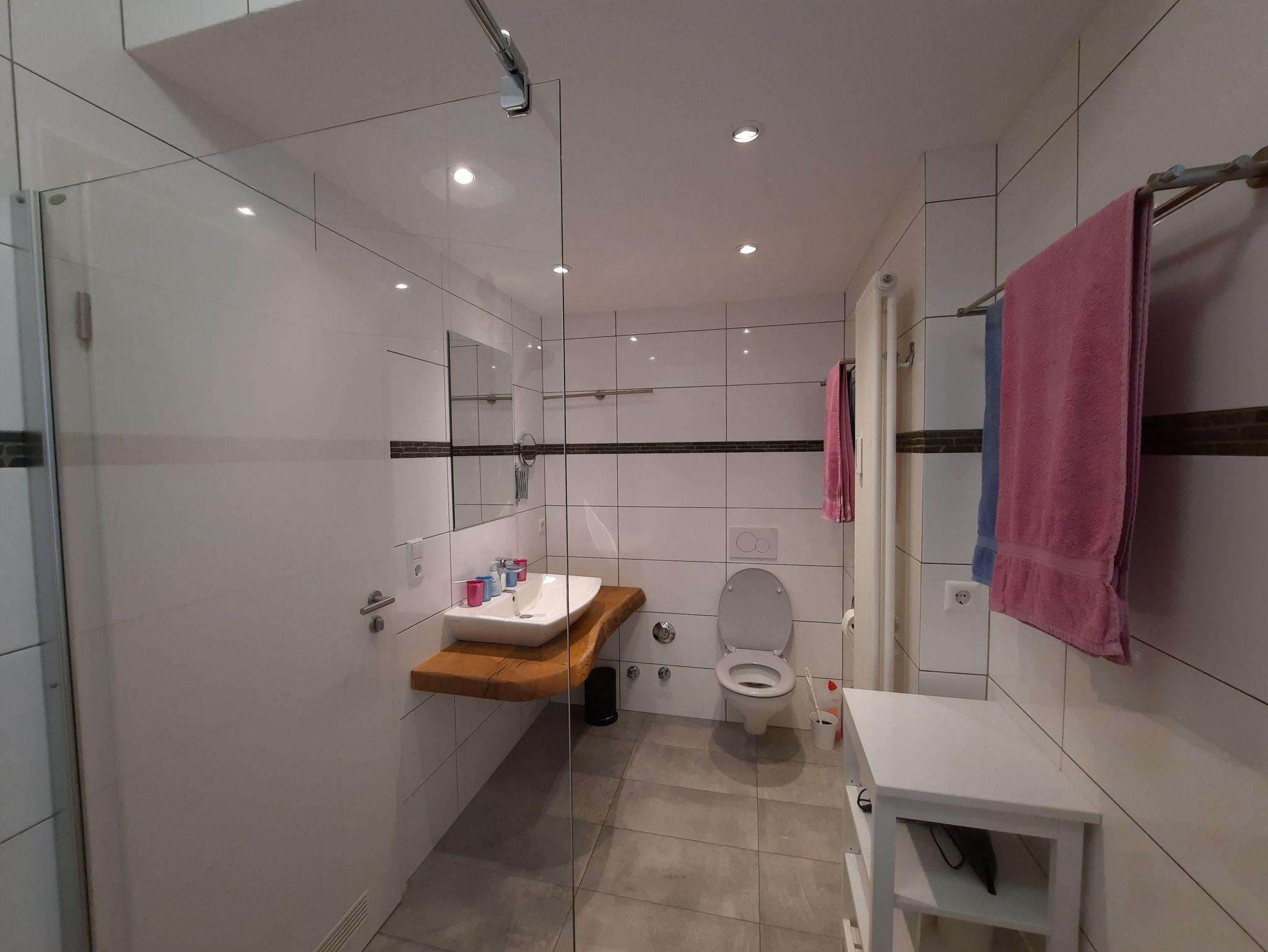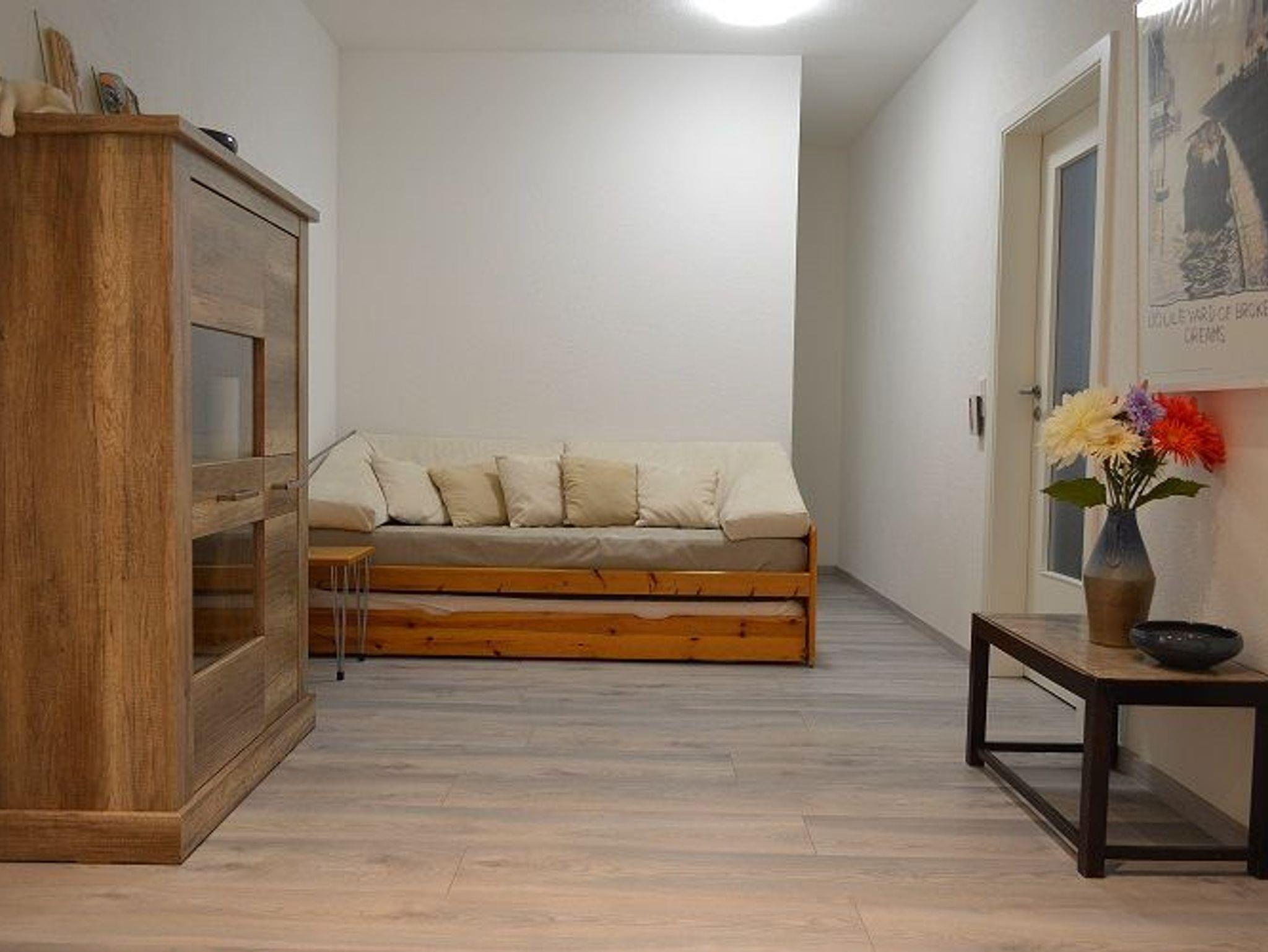 Diese liebevoll eingerichtete Wohnung hat großzügige 55m² Wohnfläche. Die Besonderheit dieser Wohnung, ist das Durchgangszimmer, dass ein Schlafsofa enthält. Falls bspw. Bekannte miteinander verreisen, die gerne getrennt von einander schlafen möchten, wäre das hier kein Problem. Gerne funktionieren wir das Sofa als Bett um. Die Wohnung ist voll ausgestattet mit Bettwäsche, Handtüchern, Kaffeemaschine, Toaster, voll eingerichteter Küche und auch Spülmaschine. Das Bad ist geräumig und mit einem Fenster versehen, auch in diesem Bad ist die Dusche ebenerdig.