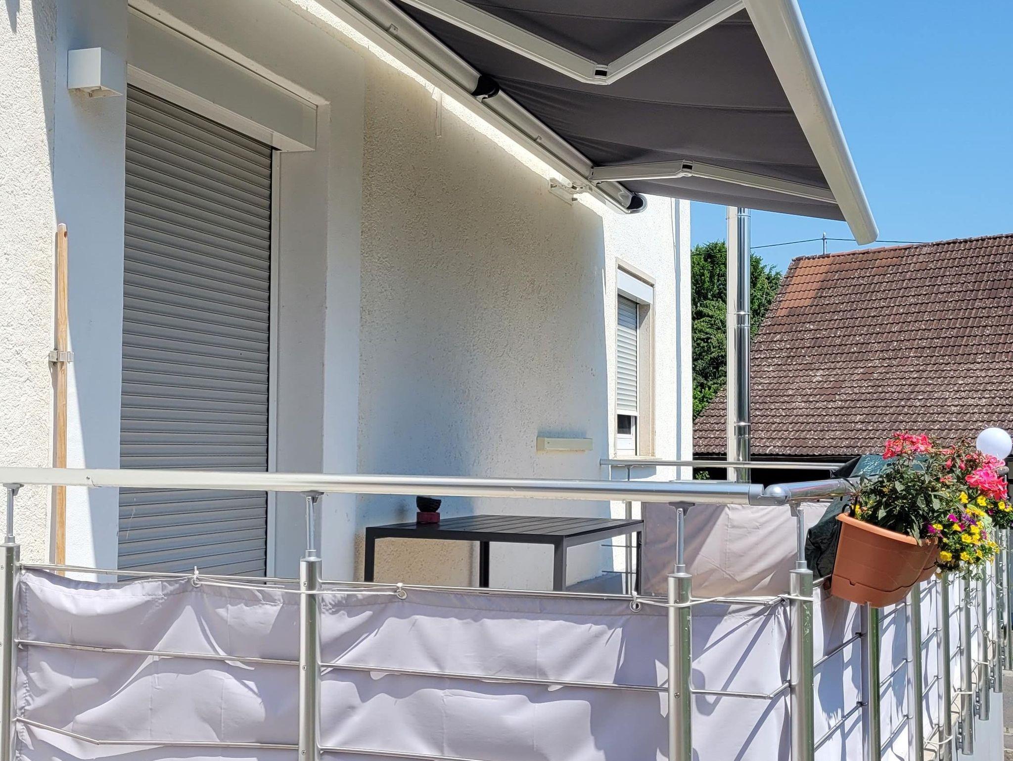 Unsere Ferienwohnung Bodensee liegt im Erdgeschoss des Hauses, hat ca. 50 m² Fläche und verfügt über 2 Schlafzimmer für 2-4 Personen, das eine mit einem Doppelbett, das zweite mit einem französischem Bett (1,40m breit). Im separatem Wohn-Esszimmer befindet sich eine Sitzecke und ein ausziehbares Schlafsofa. Vom Wohnbereich aus gelangen Sie auf die großzügige Terrasse, die mit Tisch, Stühlen, Sonnenmarkise und kleinem Wäscheständer ausgestattet ist.