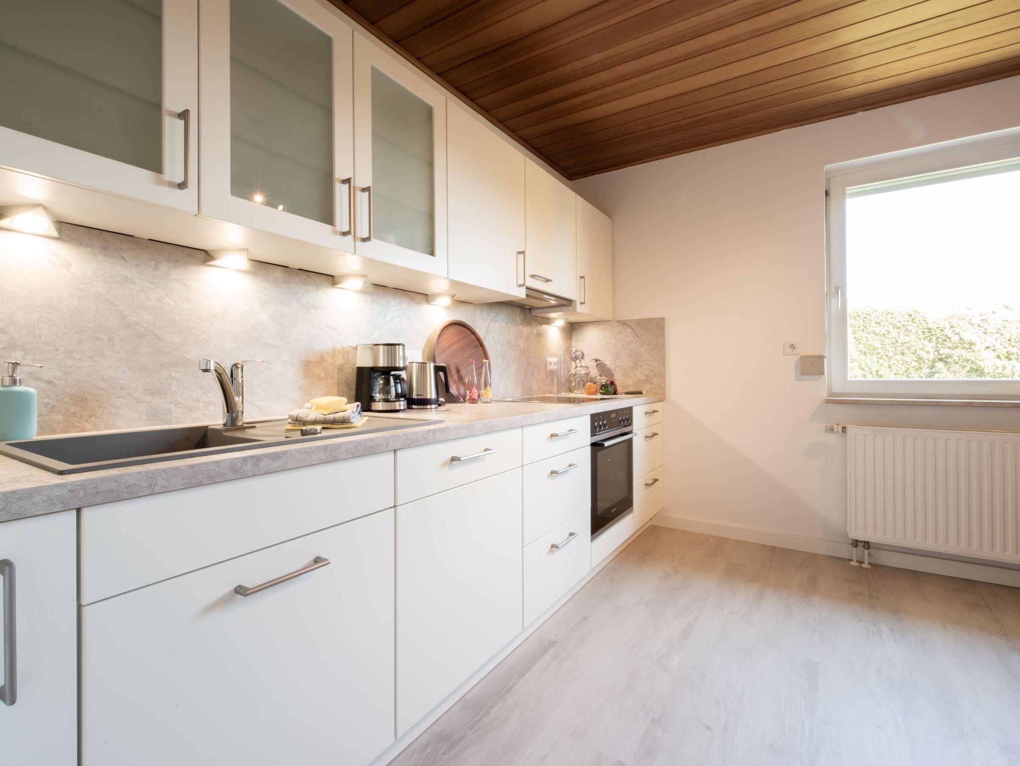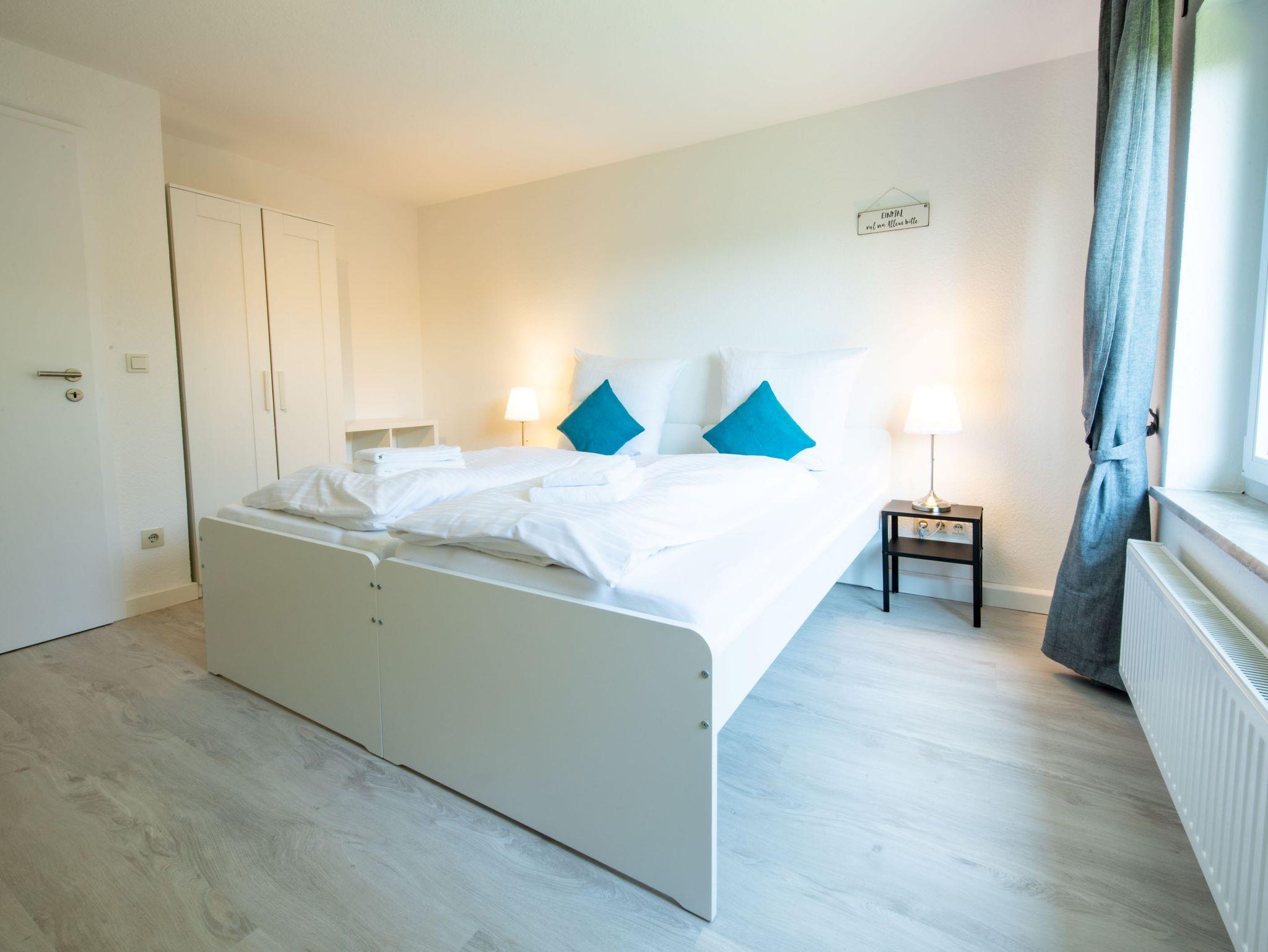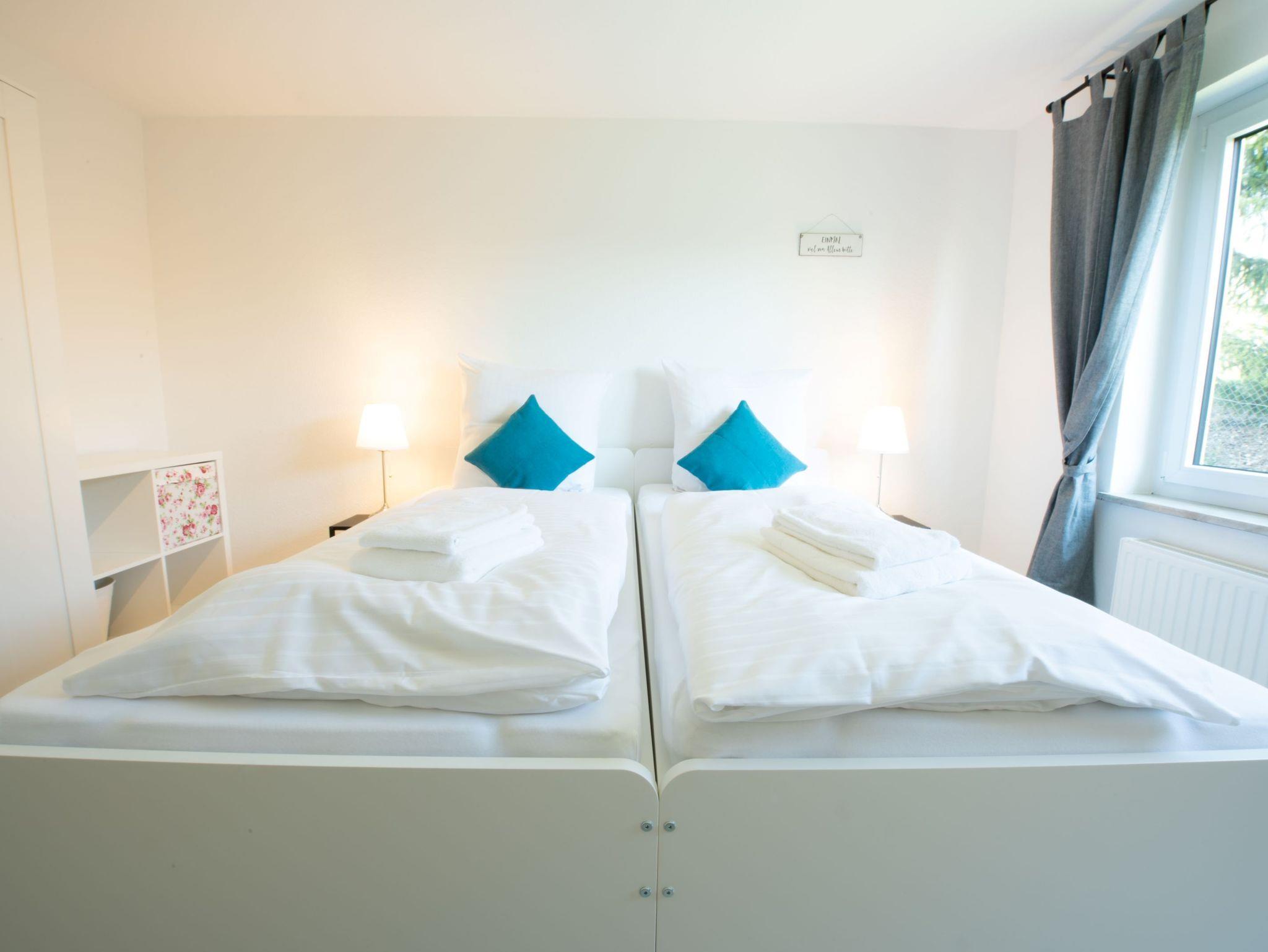 Von Ihrem privaten Stellplatz aus gehen Sie durch den liebevoll angelegten Garten vorbei am Gartenhäuschen auf das Einfamilienhaus zu, in der sich direkt im Erdgeschoss Ihre Ferienwohnung befindet. Die Ferienwohnung besticht durch ihre neu eingerichteten und großräumigen Zimmer. Farbakzente geben der Wohnung ihre Gemütlichkeit. Alle Zimmer sind mit Rollläden und neuwertigen Schallschutzfenstern ausgestattet. Die Hanglage bietet eine perfekte Sicht über die Bäume, Straße und das Wohngebiet hinweg. Für die Fahrräder steht ein Abstellplatz im Gartenhäuschen zur Verfügung.