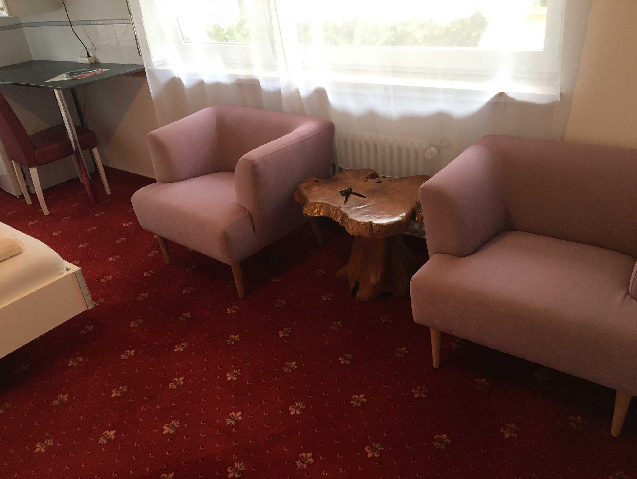Größeres Doppelzimmer (Nr. 5) in Nord-Ostlage mit Du/WC, TV, Safe, Kühlschrank, Kaffeemaschine, Geschirrschrank, Wlan (kein Balkon).
