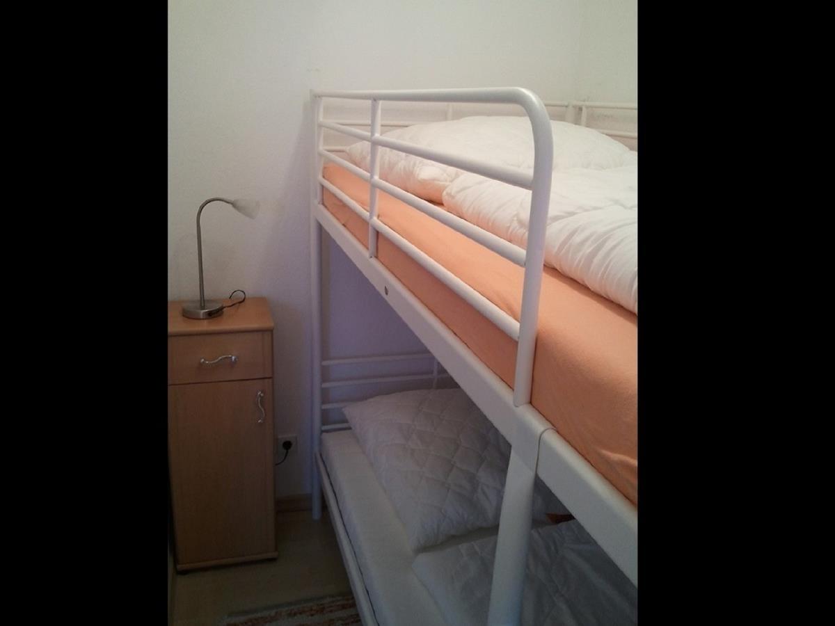 2 Schlafzimmer, davon eins mit Doppelbett und eins mit zwei Einzelbetten (Stockbett).