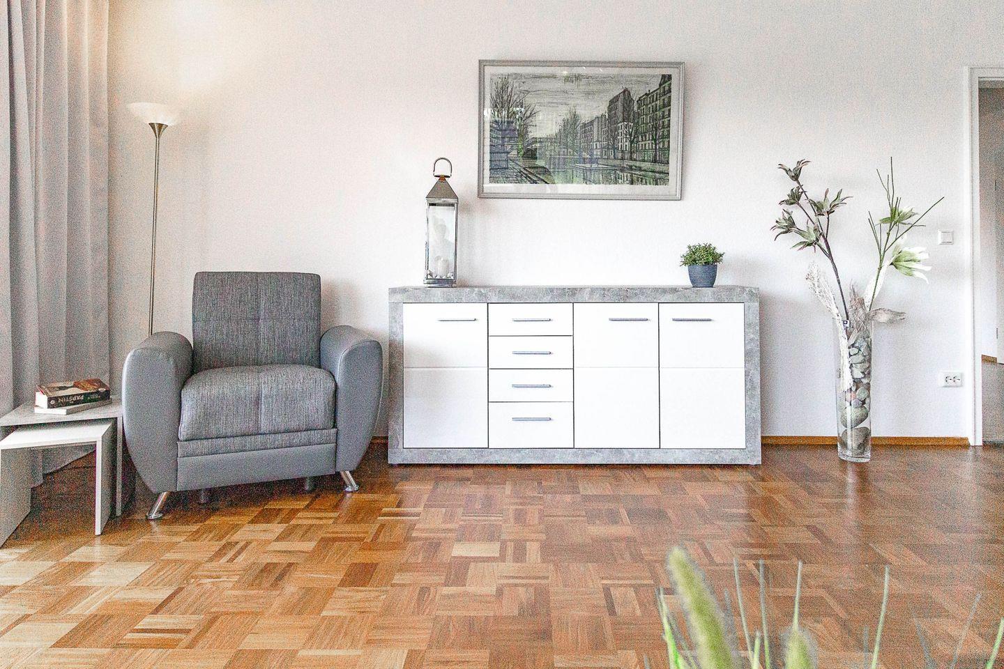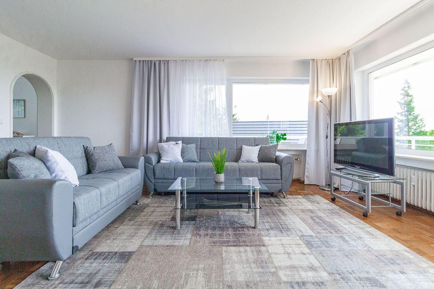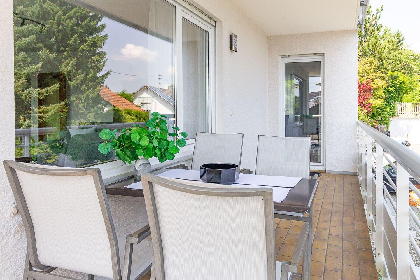 Weiträumiges, stadtnahes Urlaubs-Zuhause mit Blick auf den See für große Familien. Mit separatem Eingang, hellen Räumen und großem Süd-Ost-Balkon.
