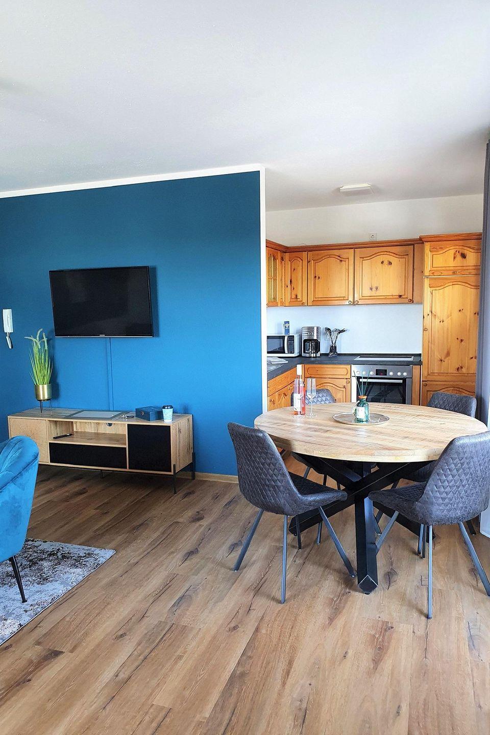 Hier können Sie sich so richtig erholen. Im großen Wohn- Essraum mit offener Küche laden Sofa und Lesesessel zum Entspannen ein (Schlafsofa 150x200 cm). Das Frühstück genießen Sie auf dem breiten Süd-Ost-Balkon, die Abendsonne auf dem Balkon Richtung See. Die Küche ist gut ausgestattet, probieren Sie mal einen Bodensee-Fisch! In wenigen Gehminuten erreichen Sie die romantische Meersburger Altstadt. Ihren Wagen parken Sie direkt am Haus. Ein besonderer Pluspunkt: der Gästebus fährt unmittelbar am Haus los. Mit Ihrer Gästekarte fahren Sie damit ermäßigt an den See. Auch zu Fuß sind es nur 10 Minuten zur Liegewiese, Therme oder zum Freibad. Zwei Bäcker, ein gut sortierter Discounter und der Meersburger Winzerverein befinden sich direkt in der Nähe.