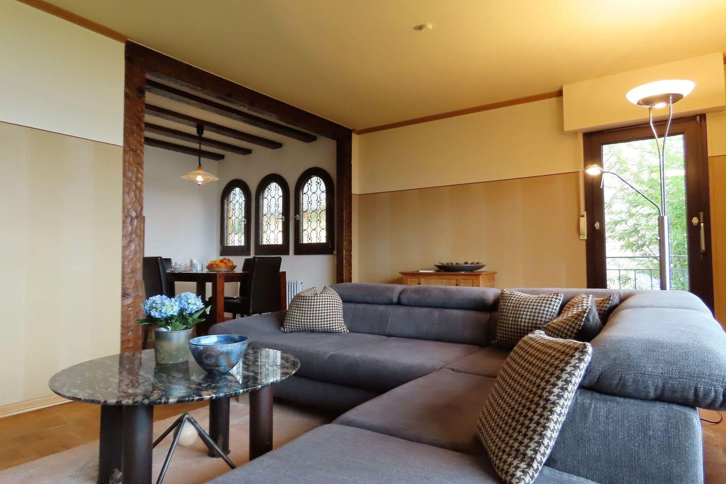 Willkommen in der stilvollen komfortablen Wohnung in bester Wohnlage, mit 3 Gehminuten zur romantischen Meersburger Altstadt. Mit Liebe zum Detail eingerichtet, lässt die Ausstattung keine Wünsche offen. Vom großzügigen überdachten Balkon haben Sie einen einmaligen Ausblick über den großen Garten hin zum See und der Alpenkette. Der große Wohn-Essbereich ist mit einem Panoramafenster versehen.