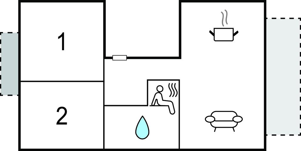 Opholdsstue/køkken - 1 Soveplads. (Sofa, madras eller lignende).