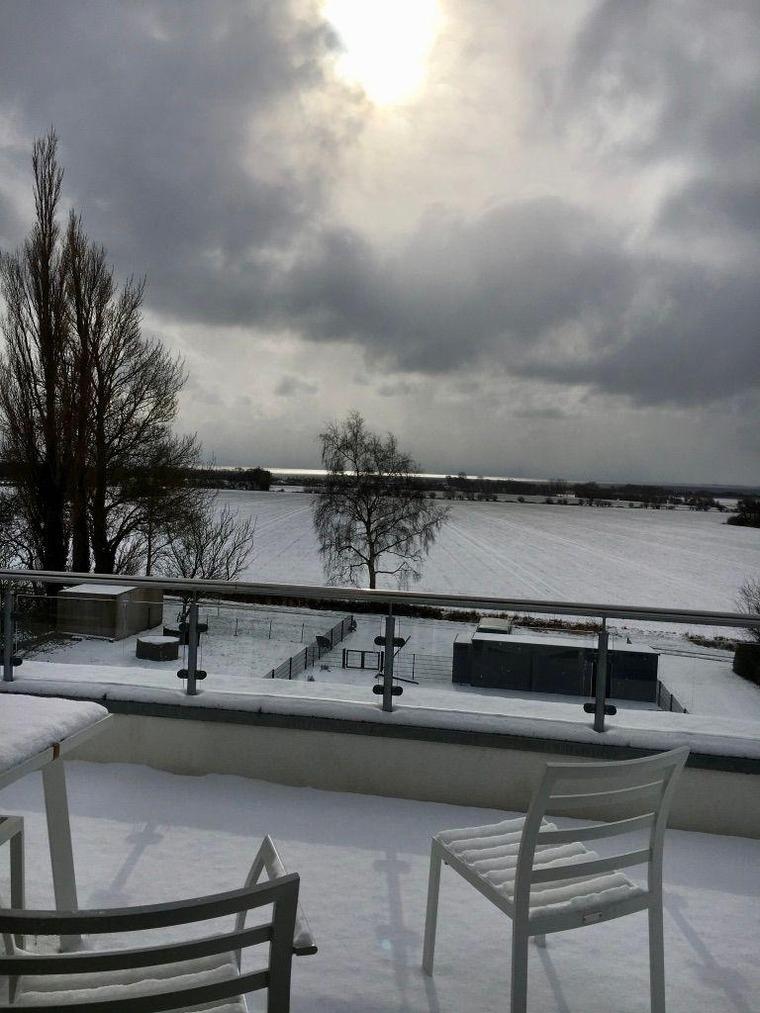 Die riesige Dachterrasse bietet Ihnen einen unvergesslichen Ausblick auf die Felder von Fehmarn bis hin zur Ostsee