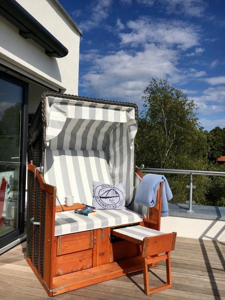 Auf der großen Dachterrasse befindet sich ein Strandkorb. Eine elektrisch ausfahrbare Markise bietet Ihnen Schutz vor der Sonne.
