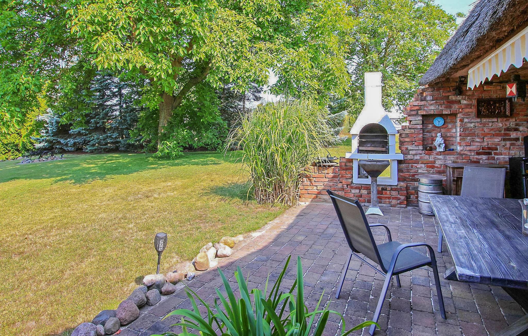 centrum af Meesiger og alligevel rolig beliggenhed, ligger ferielejligheden til 2 personer i et separat udhus på ejerens cirka 2.400 kvadratmeter store bolig- og erhvervsejendom. Kummerower See med havn, en smuk strand, en snackbar og en hotelrestaurant ligger cirka 2.000 m. Den ikke-ryger lejlighed (ca. 39 kvadratmeter stor, udstyret med gulvvarme og insektbeskyttelse på vinduerne (ryger) er tilladt udenfor) har en kombineret stue-soveværelse (sovesofa - 1,60 bred, lænestol, fladskærms-tv, hi-fi-anlæg), et separat køkken (spisebord, el-komfur med ovn, køleskab med fryser mulighed, opvaskemaskine, mikroovn , forskellige små køkkenmaskiner), adgang til badeværelset gennem køkkenet! (bruser, toilet, vaskemaskine, hårtørrer) og en lille gang.Der er også parkeringsplads, cykelkælder, gratis WiFi, barneseng, liggestole og siddepladser i den store have. Den overdækkede grillplads kan benyttes i samråd med ejeren Samlet pris inkluderer slutrengøring, sengetøj, el og vand. Medbring venligst håndklæder. En lille hund op til en højde på 30 cm er tilladt i denne ejendom. Alle andre dyr eller flere dyr kræver ejerens samtykke før reservation. Den lille, landlige by Meesiger ligger direkte ved søen Kummerow, den fjerdestørste i Mecklenburg-Vorpommern - midt i det maleriske landskab i 'Mecklenburg-Schweiz'. Regionen er præget af bølgende bakker med vidunderlig udsigt og er ideel til vandre-, cykel- eller vandvandringer. Ca. 1,5 km væk ligger Gravelotte campingplads og vandvandringsrasteplads med en smuk strand, havn, fiskesnackbar og en hotelrestaurant. Skibs-, båd- eller kanoture på søen eller den tilstødende Peene er lige så værd som udflugter i Reuter by Stavenhagen, Malchin eller hansestaden Demmin, hver knap 15 km væk. Her er masser af indkøbsmuligheder og andre spisemuligheder.